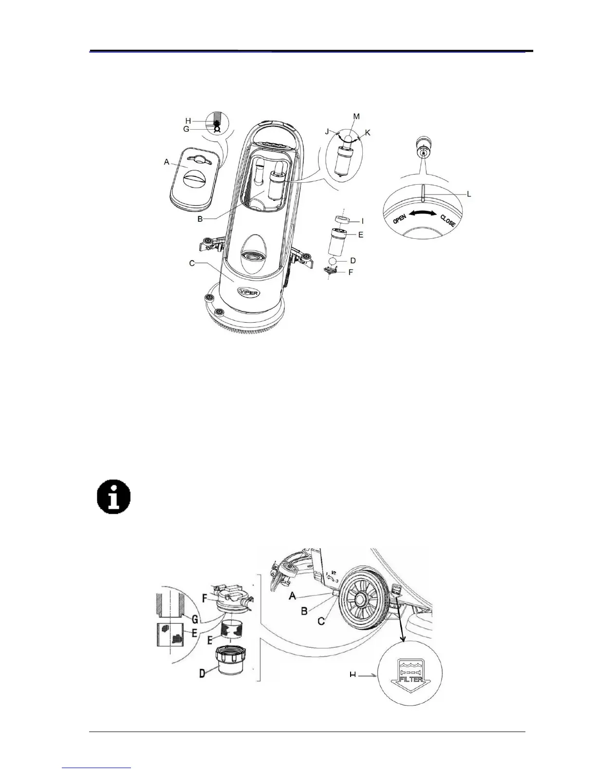 The filter (E) must be accurately installed onto the position of the housing (G).