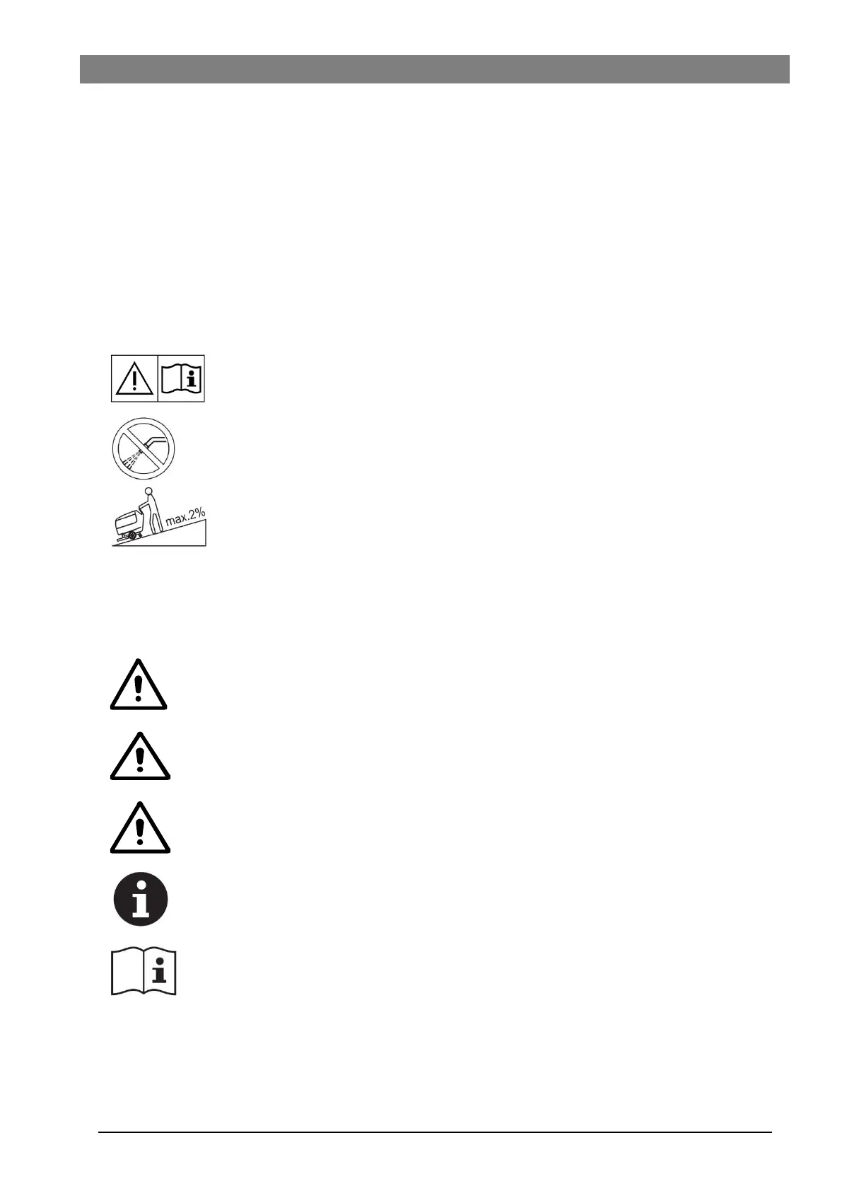 不要在超过规定坡度的斜坡上使用机器。