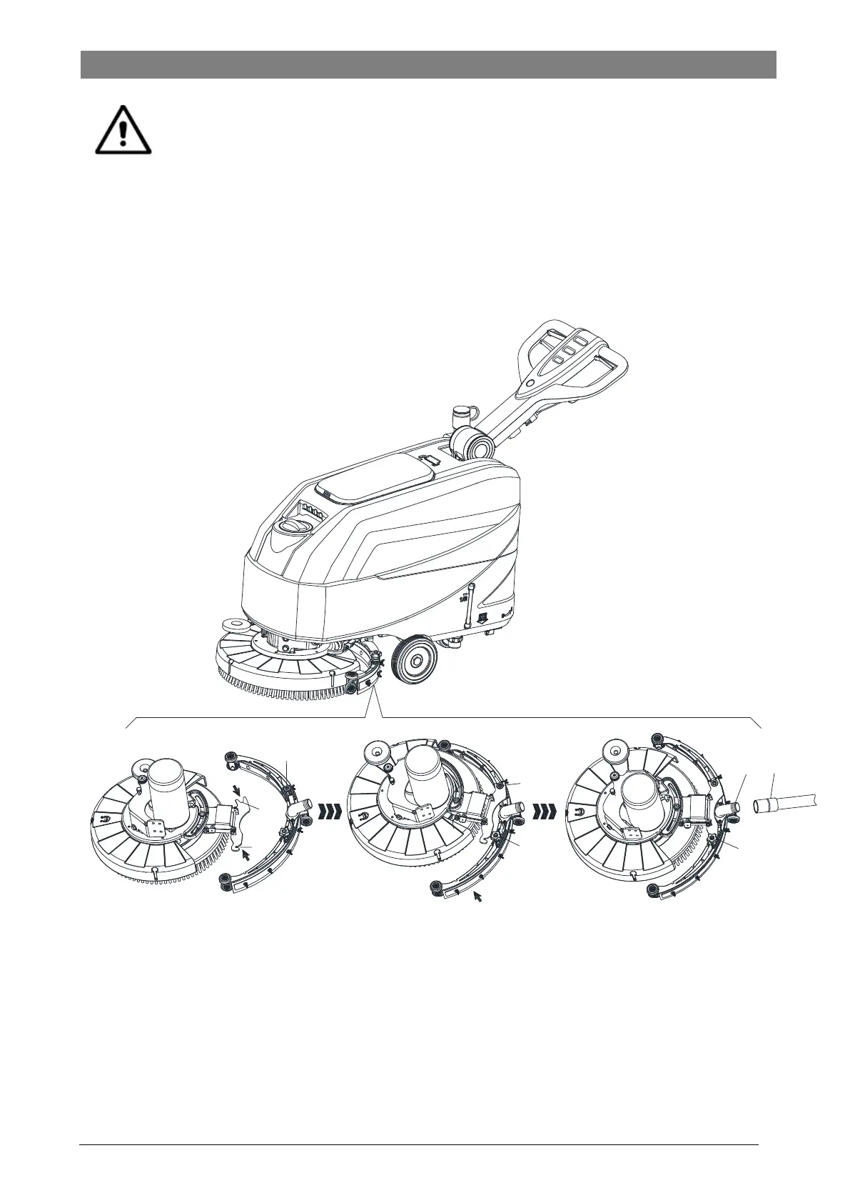 3. Baje el cabezal del cepillo/porta-pad (12, Figura 1) levantando el pedal (36), cepillo en el suelo.