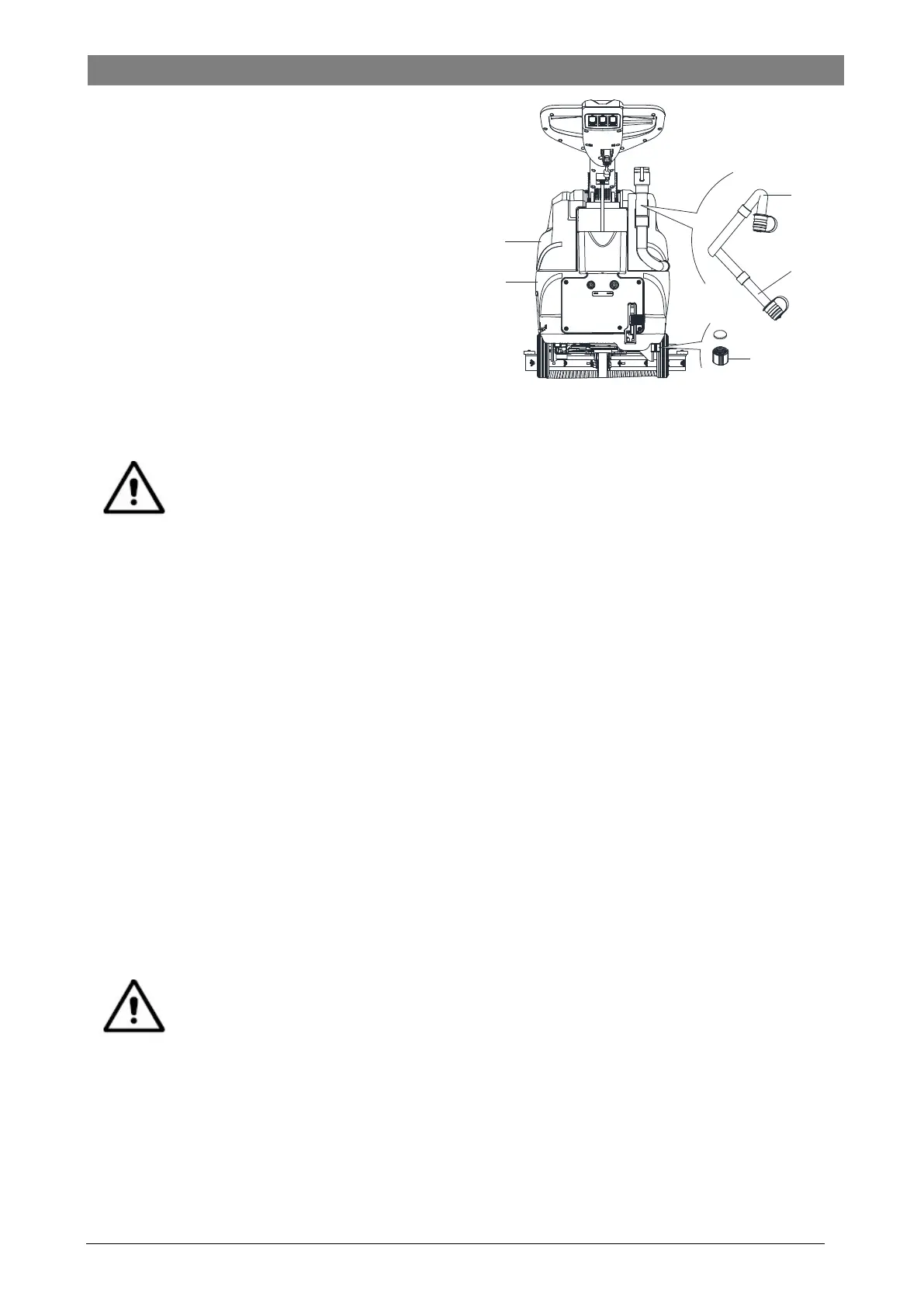 8. Vacíe el depósito de solución detergente con la tapa de salida (E, Figura 10). Después del uso, enjuague el depósito con agua limpia.