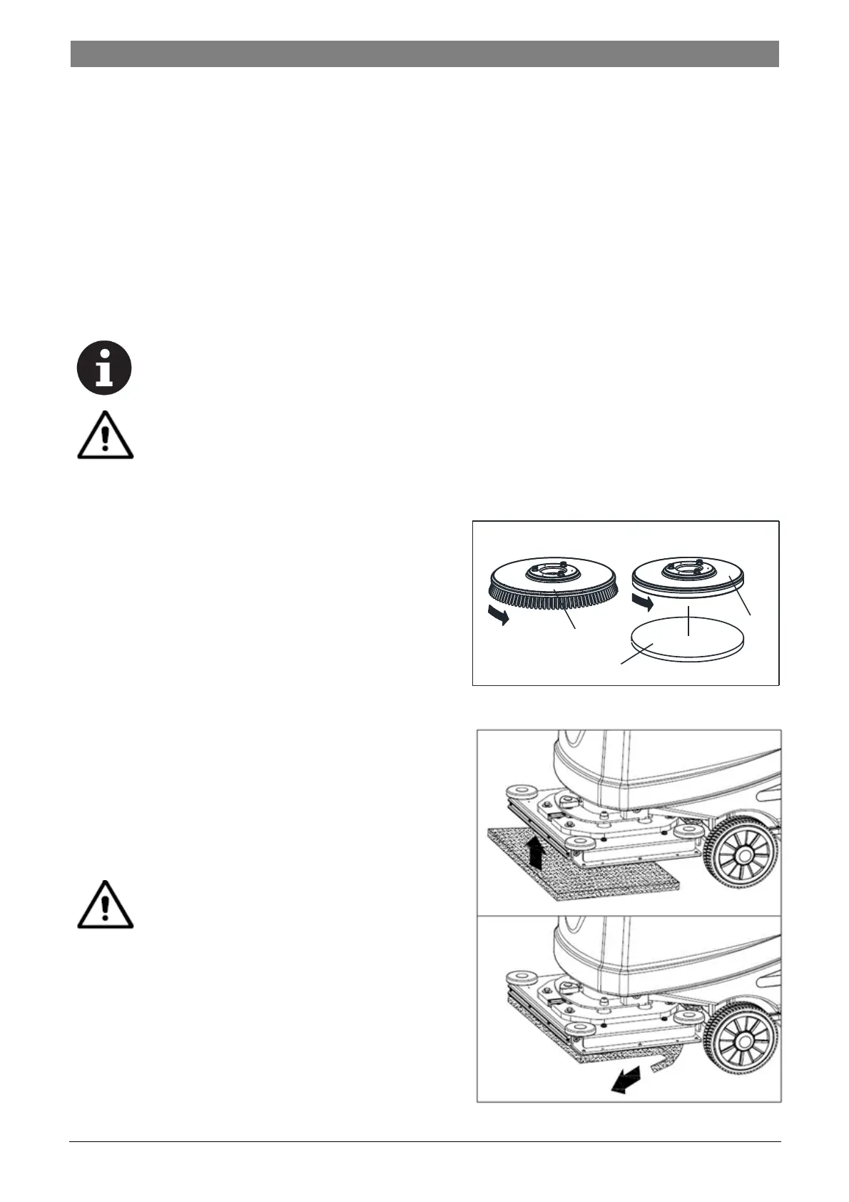 Instale el cepillo (A, Figura 5) o el porta-discos (B y C, Figura 5) según el tipo de suelo a limpiar.