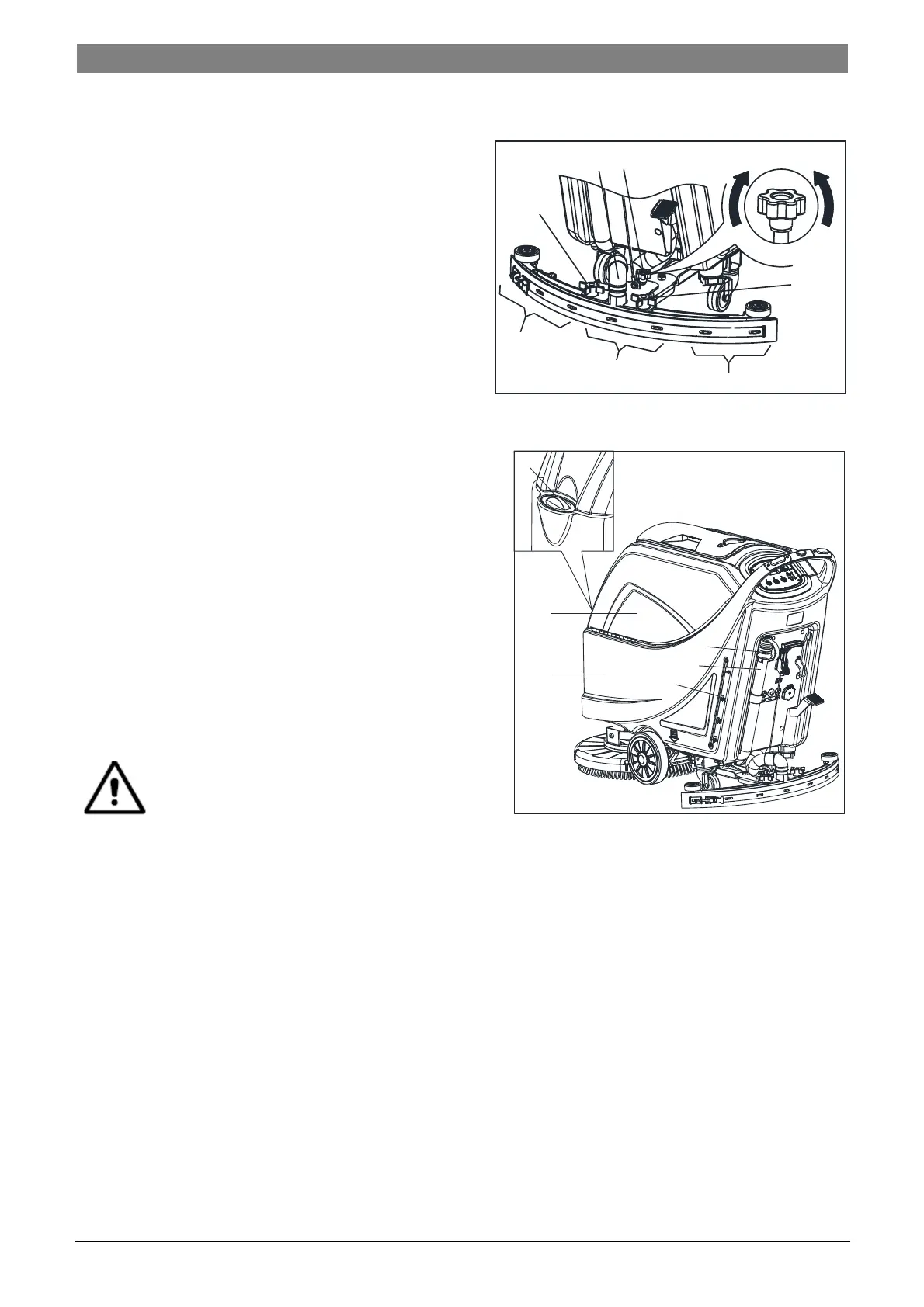 5. Baje el grupo de cepillo portacepillos/porta-discos (K) al levantar el pedal (L). (solo para máquina de discos)