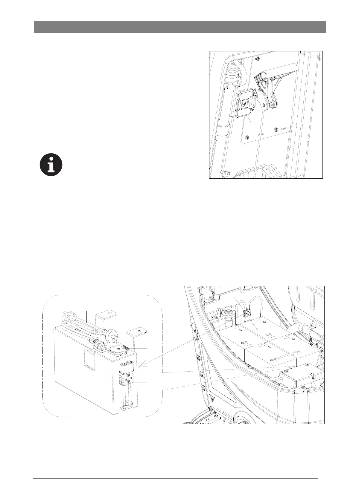 5. Introduzca la llave de encendido (42, Figura 3) y colóquela en la posición «I». Controle el estado de carga de las baterías desde la