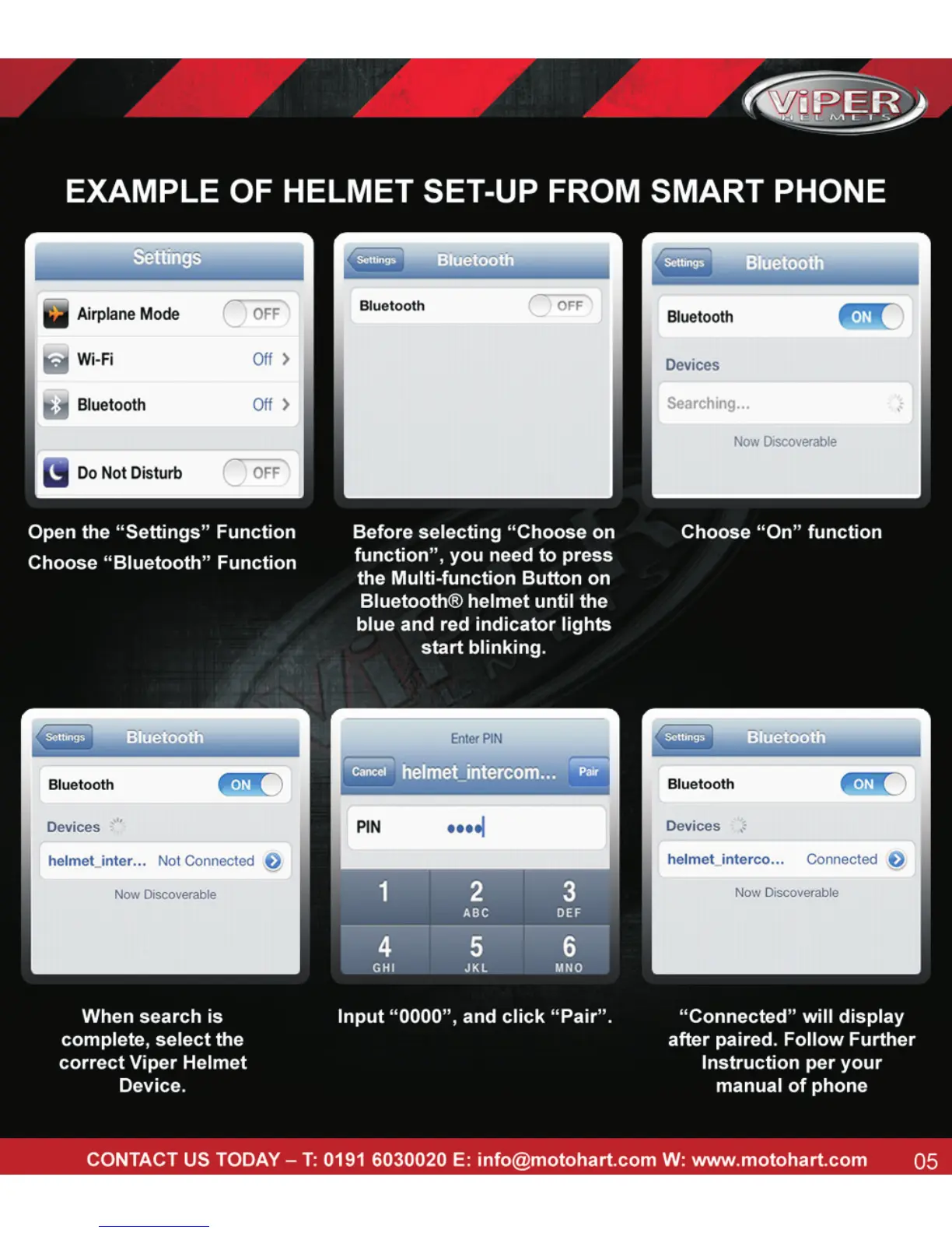 Viper BL+ - Example of Helmet Set-up from Smart Phone