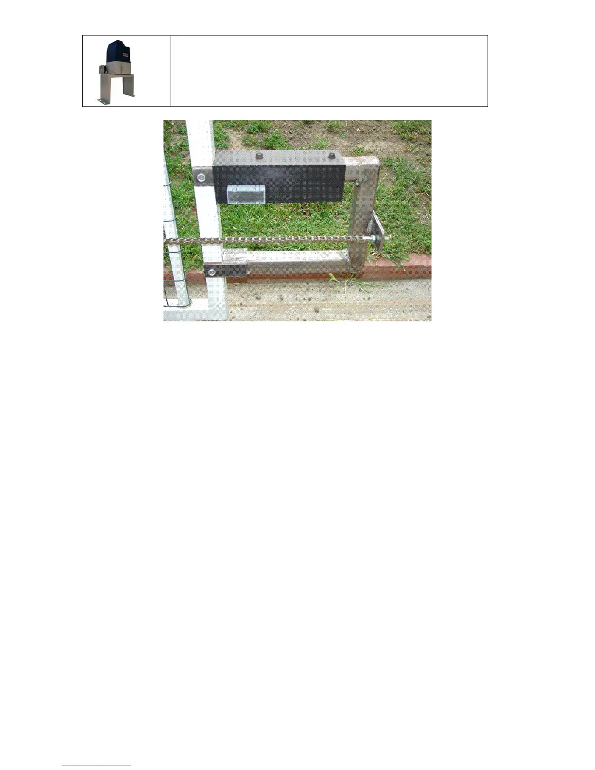 ½” square tubing, and is 12” long and 10” high. At the right side, the chain bolt plate