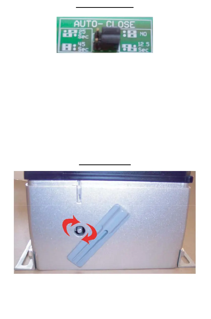 To change the amount of time before the gate closes, remove the jumpers and set to desired time by