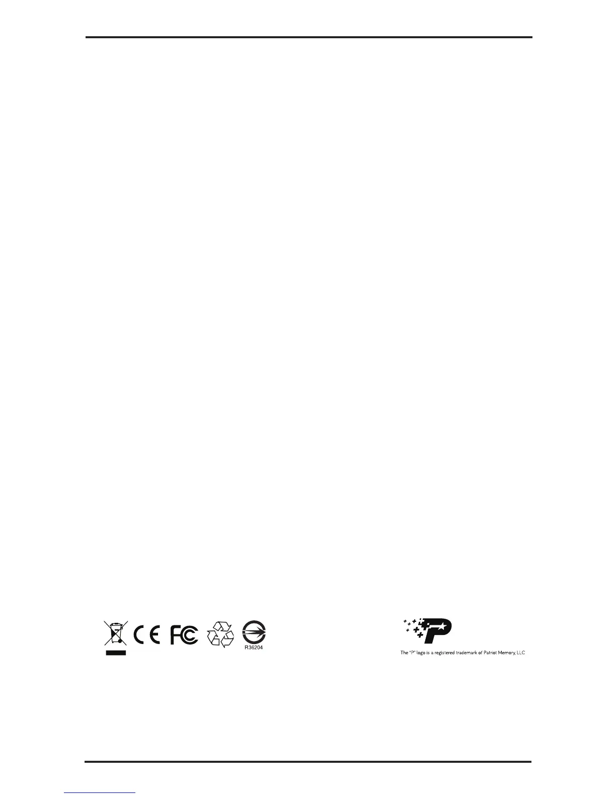 to www.patriotmemory.com for support. Do not attempt to service or x the device yourself at any time.