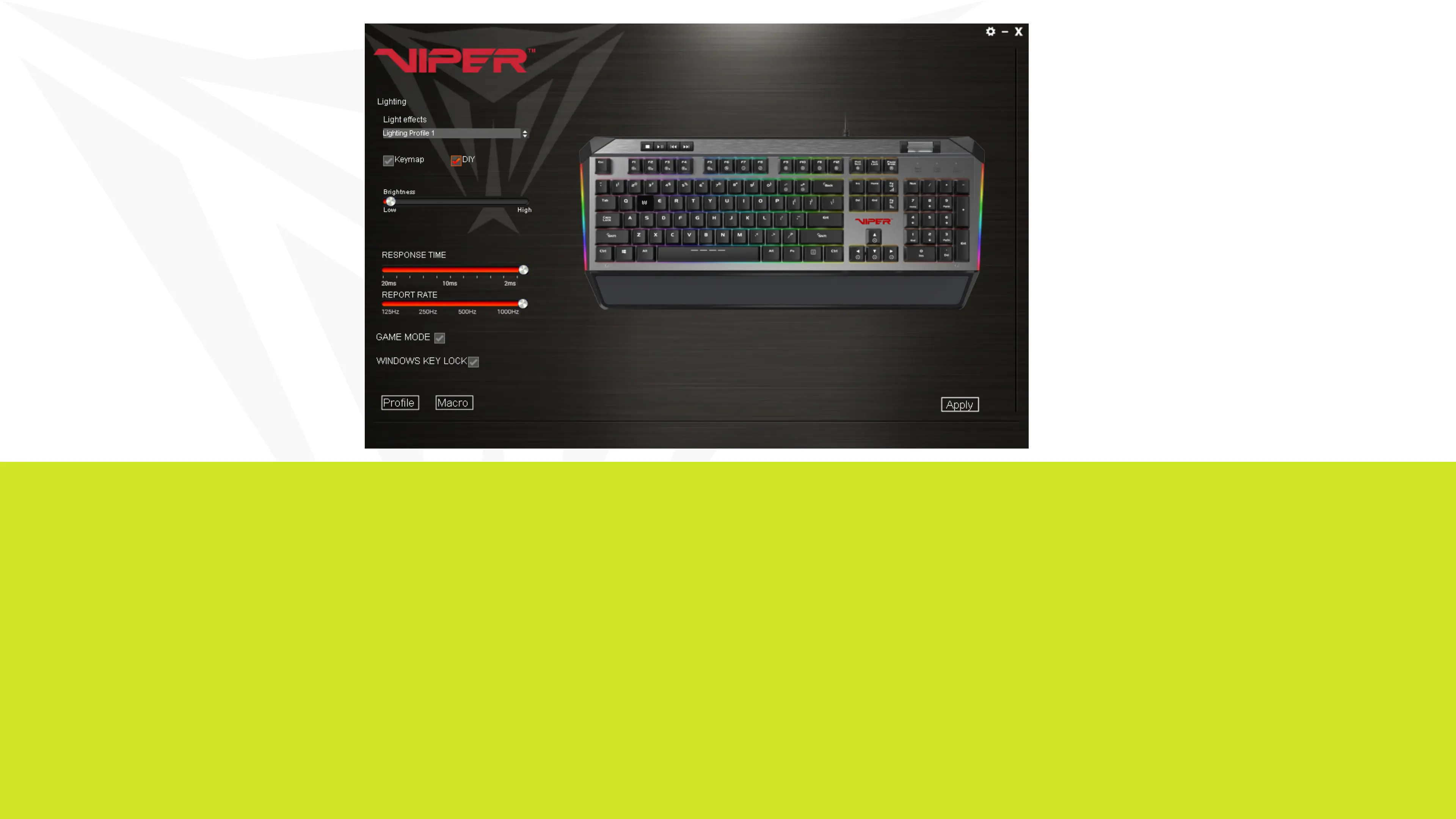 You may adjust the response time and report rate for the keyboard from the main menu. A lower response time will de-