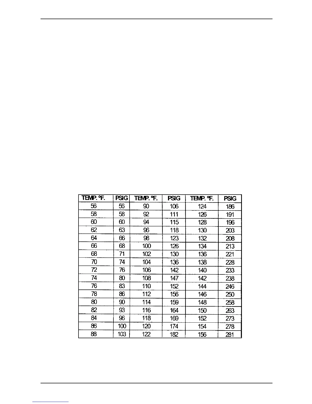 nominal pressure listed in the table for the respective tank temperature, IT IS NOT