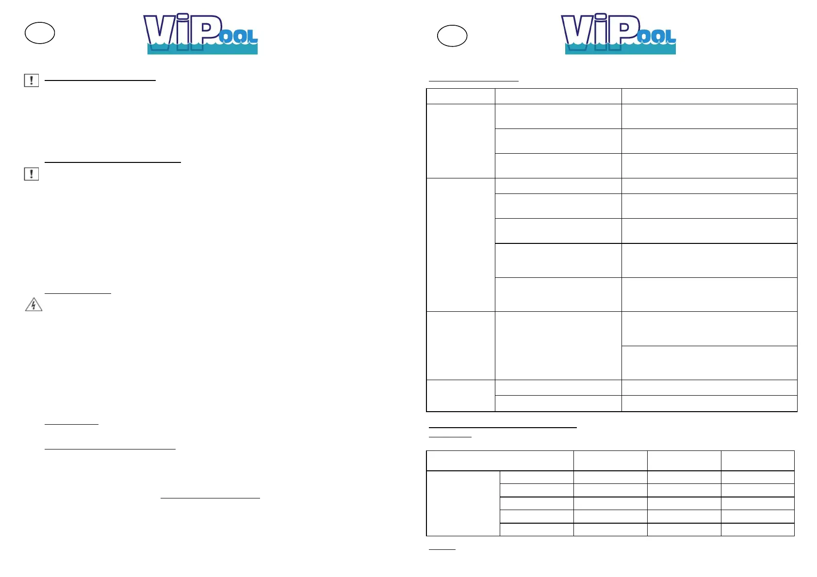 généralement altérer le bon fonctionnement des pompes. La 1ère mise en route, la présence dans le bassin de sable