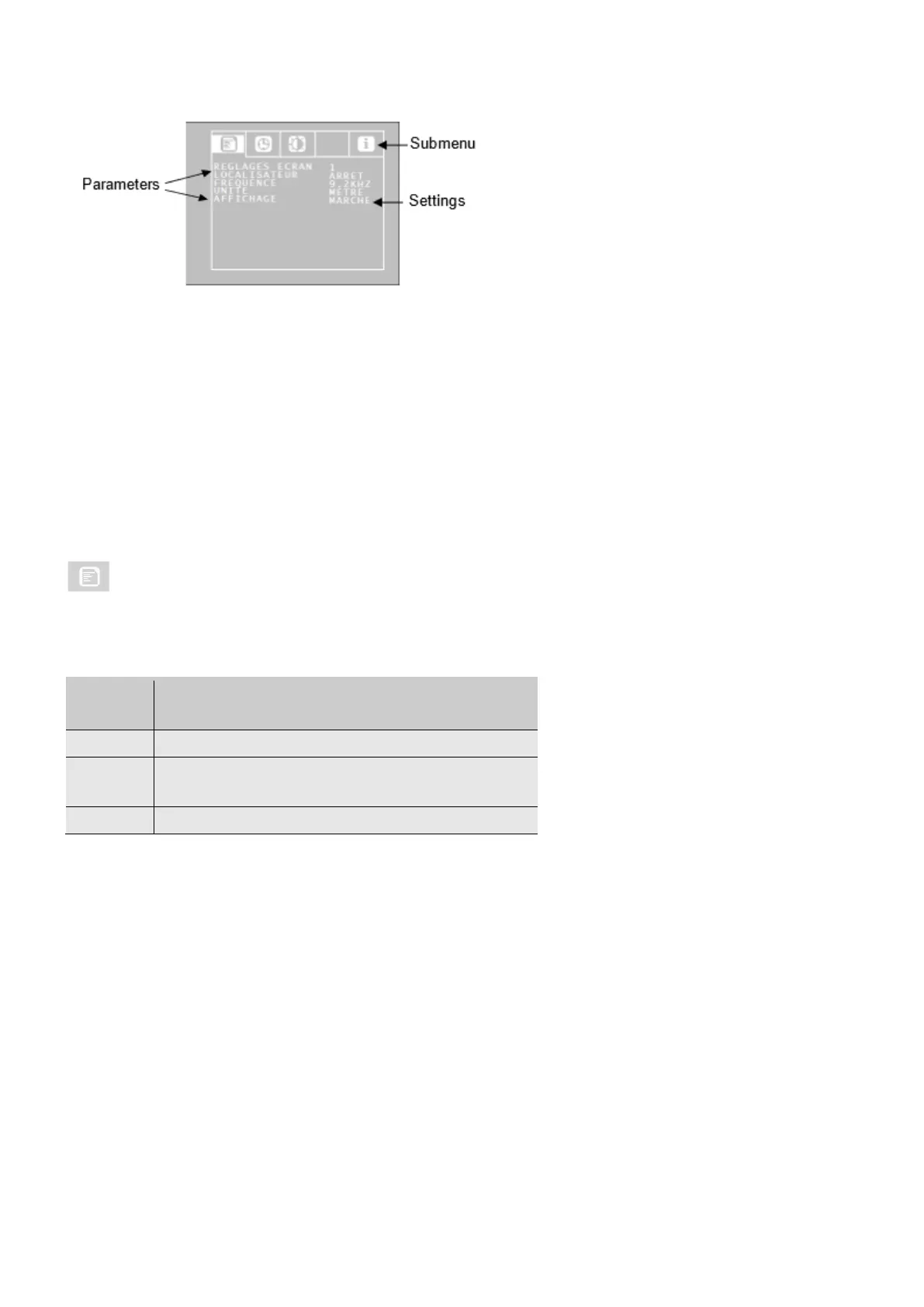 Go to the parameter required using the up/down arrows, and then select the settings required