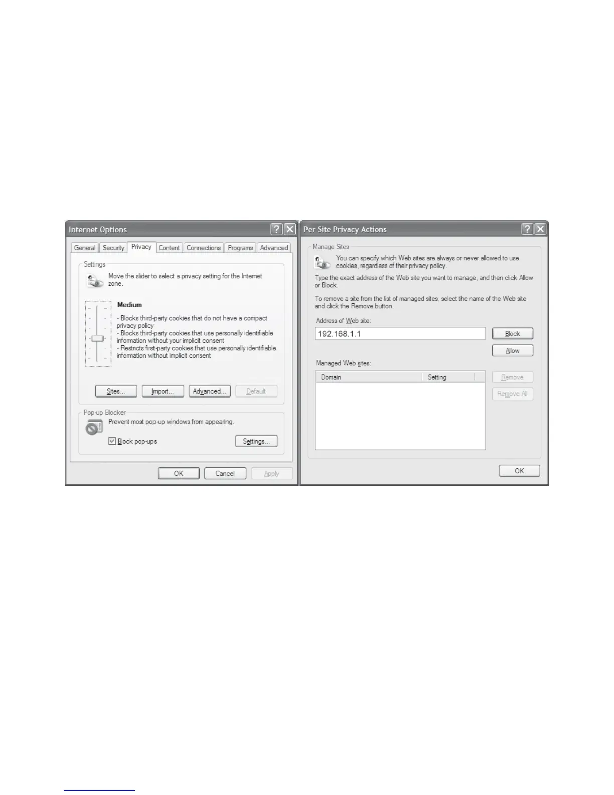 In the Address box type 192.168.1.1, then click Allow. Click OK twice to exit.