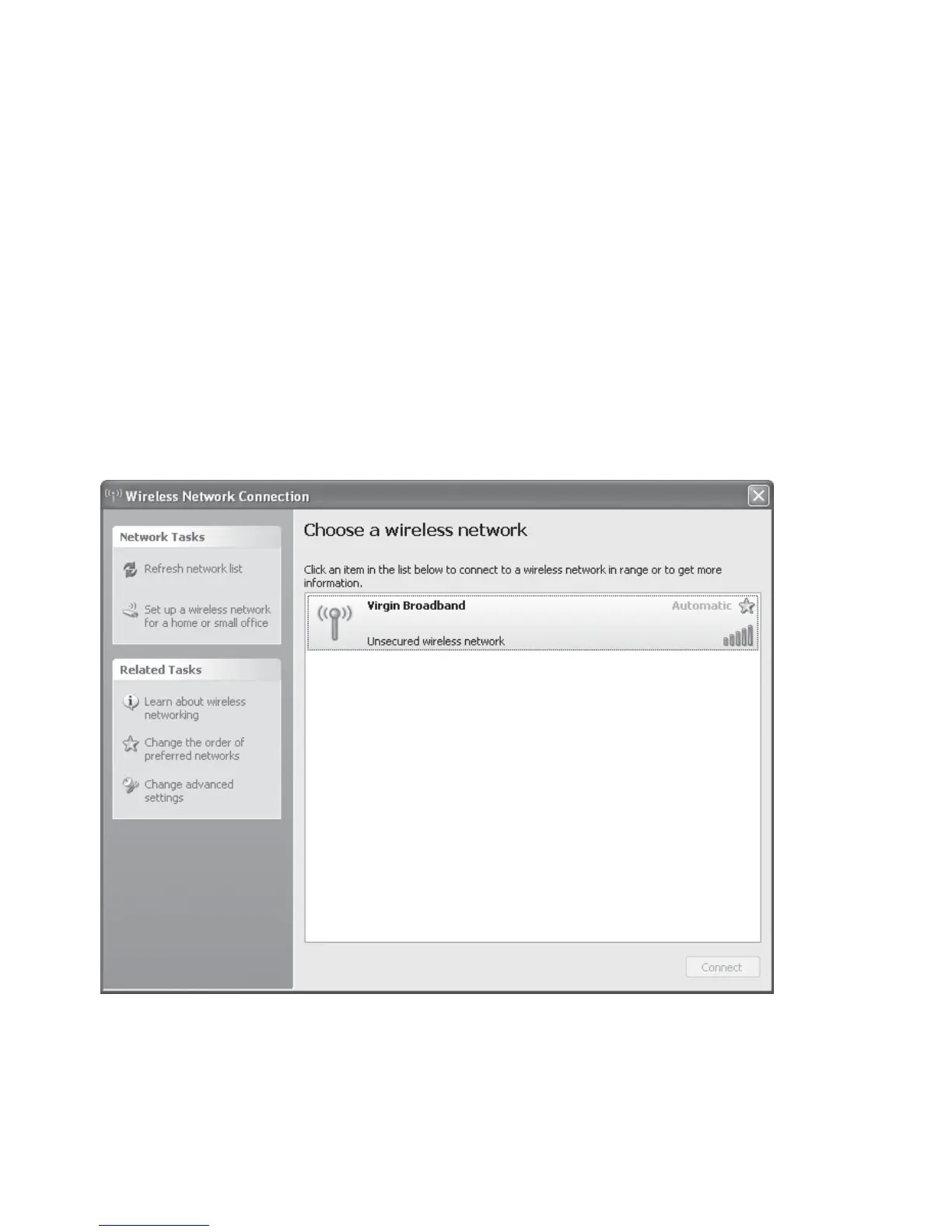 2. Select the network “Virgin Broadband” and click Connect. If you have enabled wireless security,