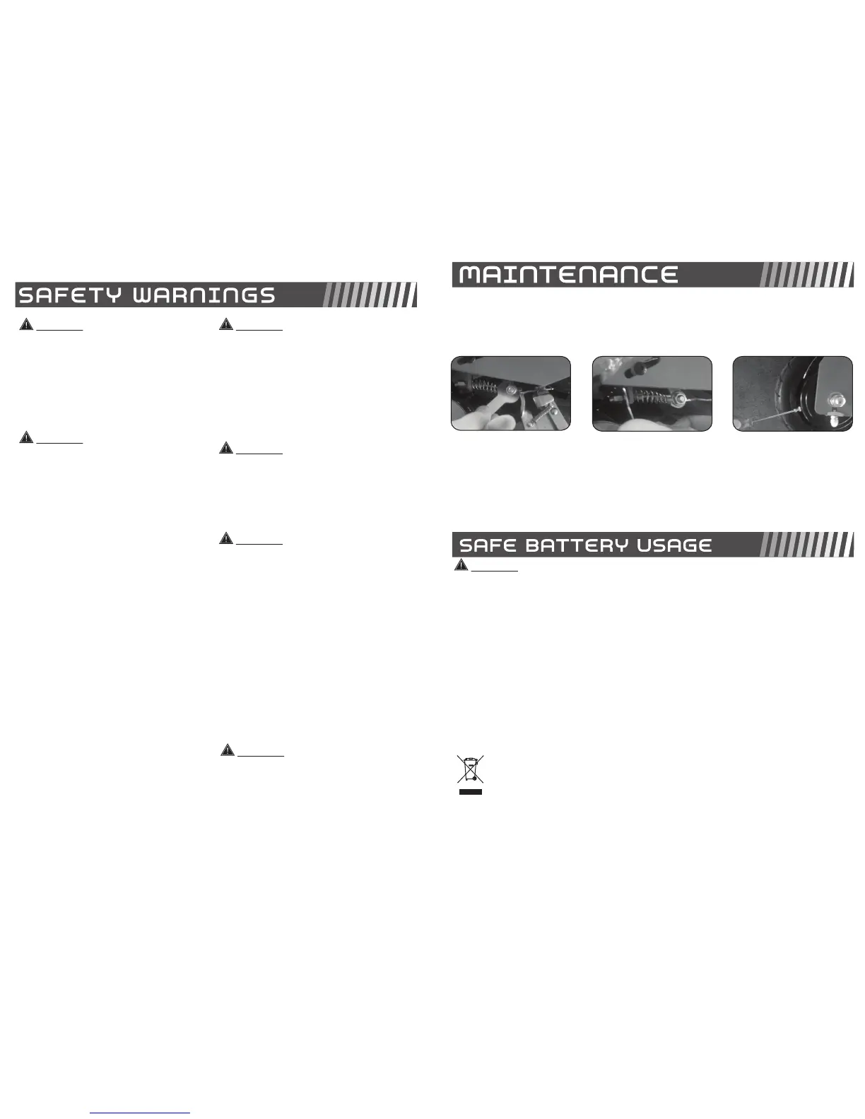 dispose in re, as the battery may leak or explode. Do not dispose in household trash recepticles. The incineration, land lling or