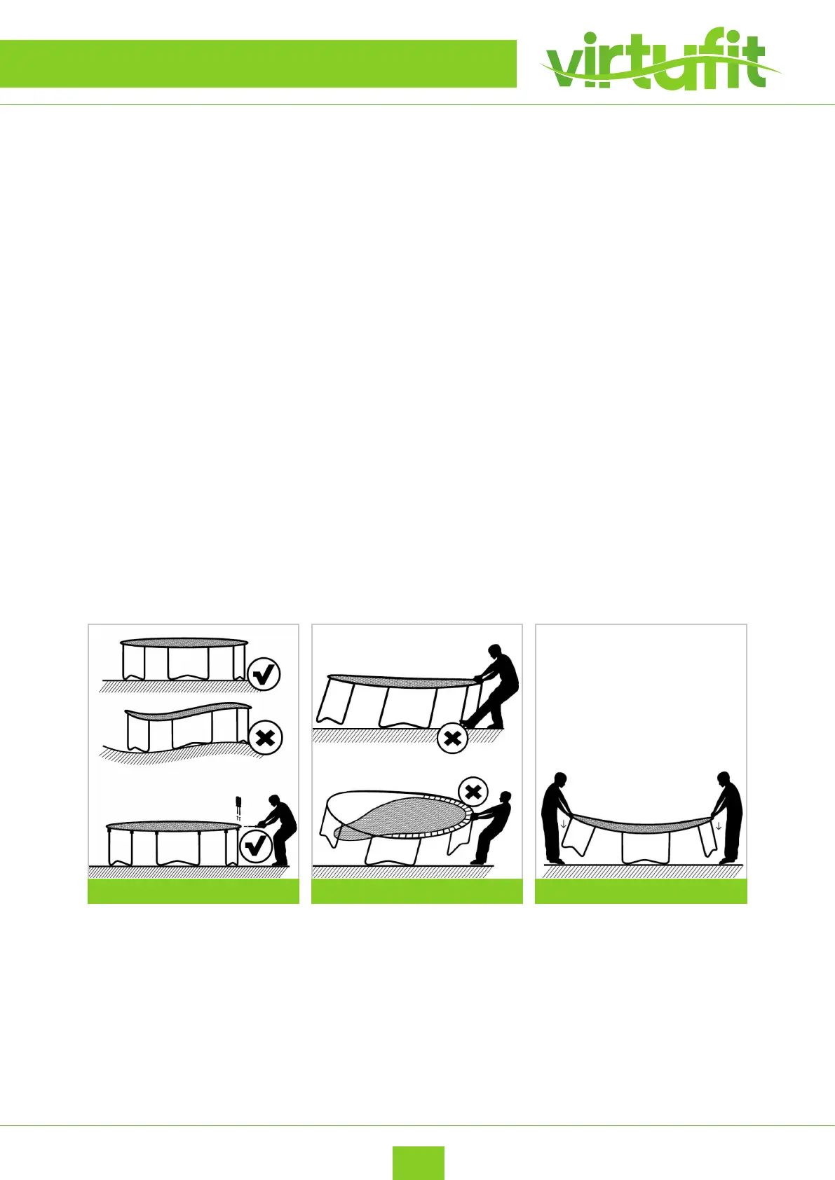 • DO NOT load the springs onto the frame on only one side of the trampoline. Uneven distribution of