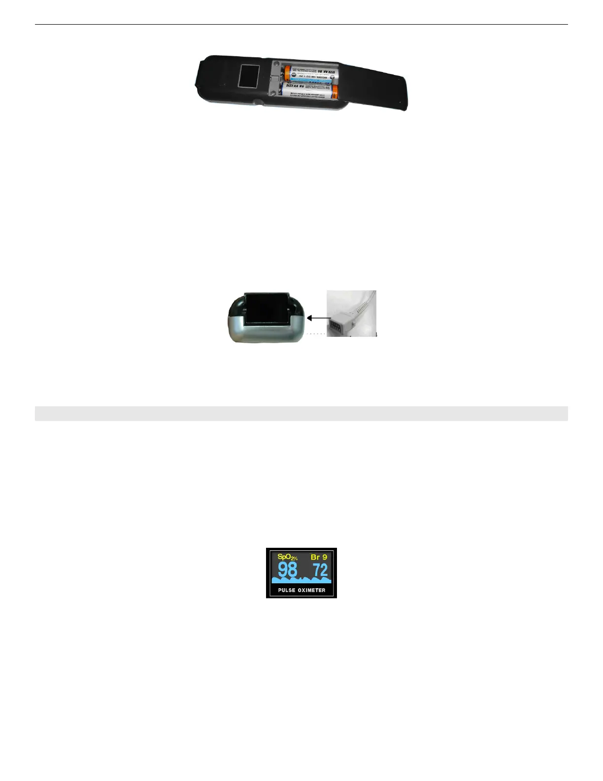 Connect the oximeter sensor to the top of the oximeter as shown in Fig. 4. Ensure that the sensor is