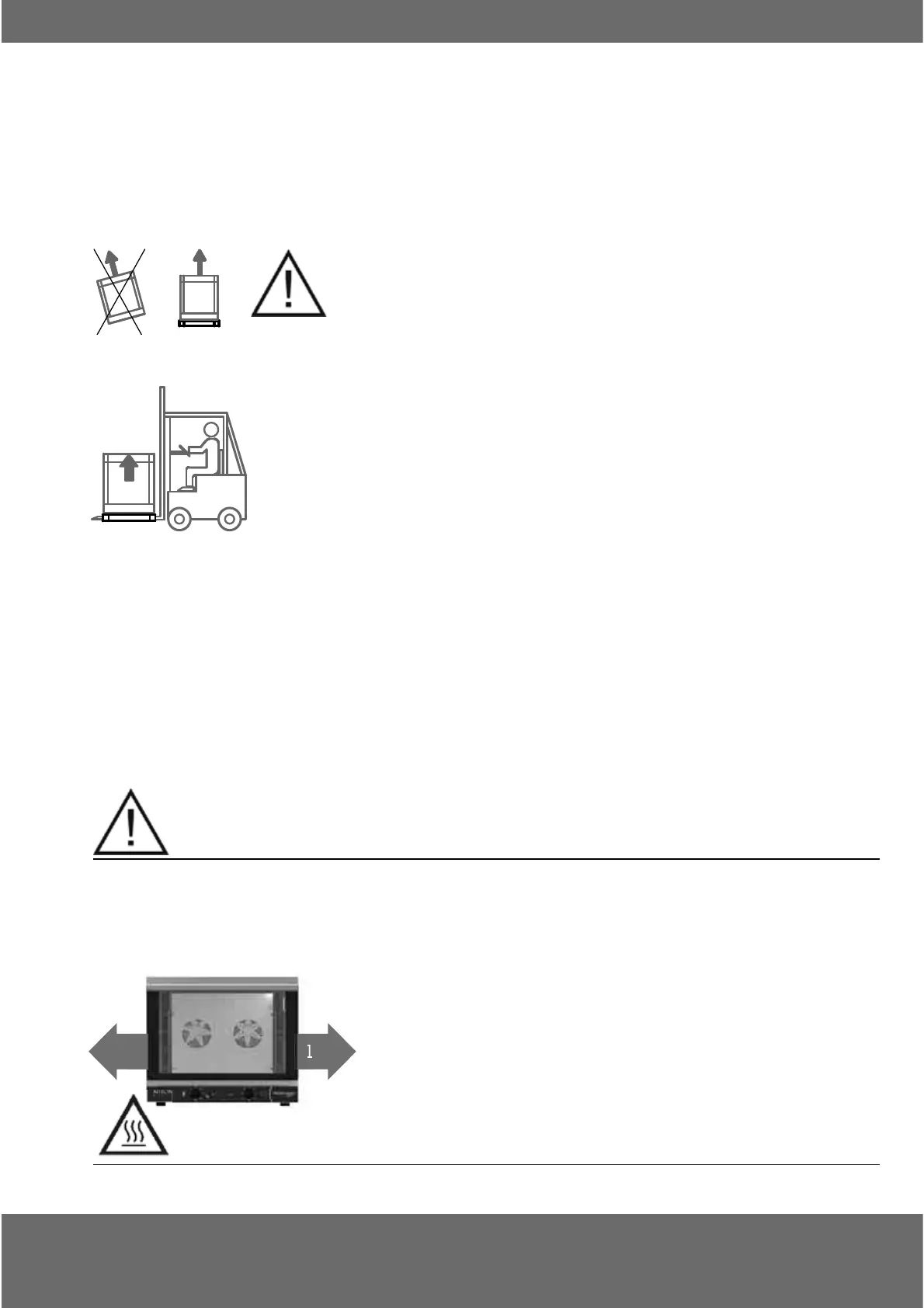 Beladen, Maße, Gewicht, Verdampfendes Wasserbecken, verstellbare Füße, elektrische Anschlüsse und Wartungsvorgänge.