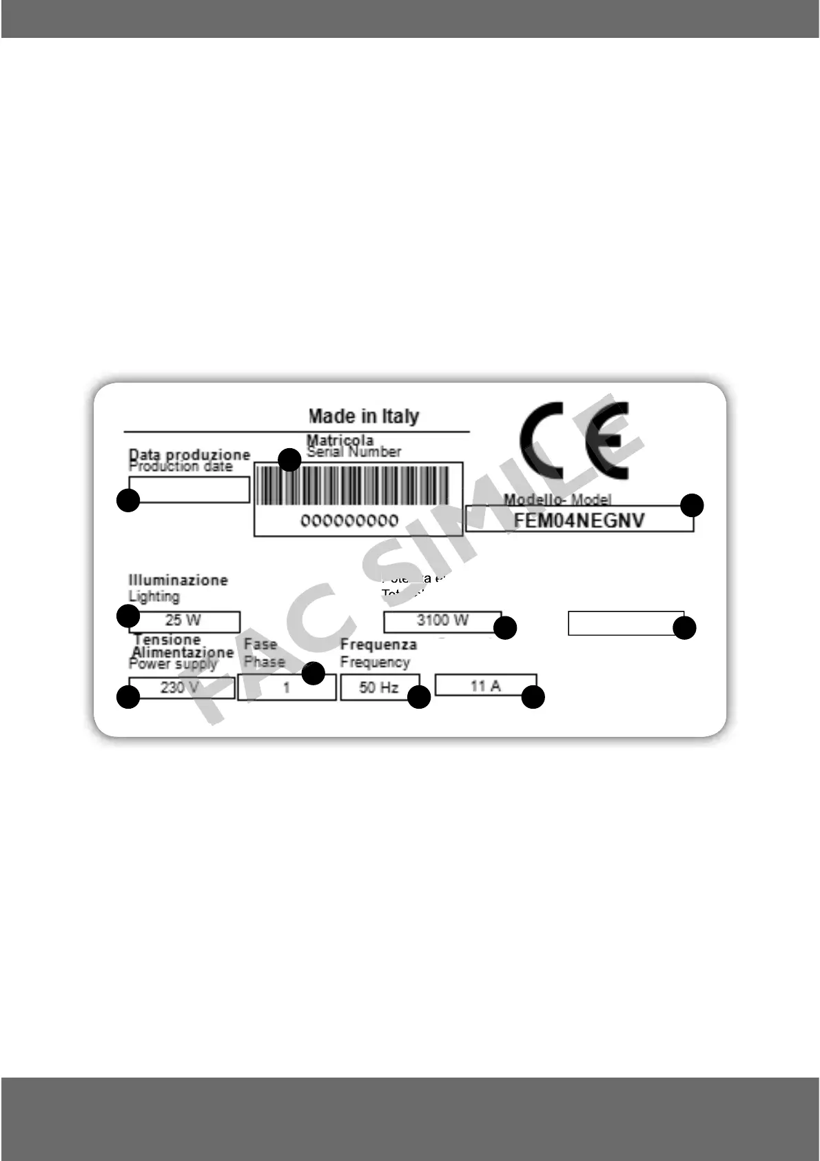 Tale targhetta defi nisce tutti i dati tecnici del prodotto come riportato nella legenda nella prossima pagina.