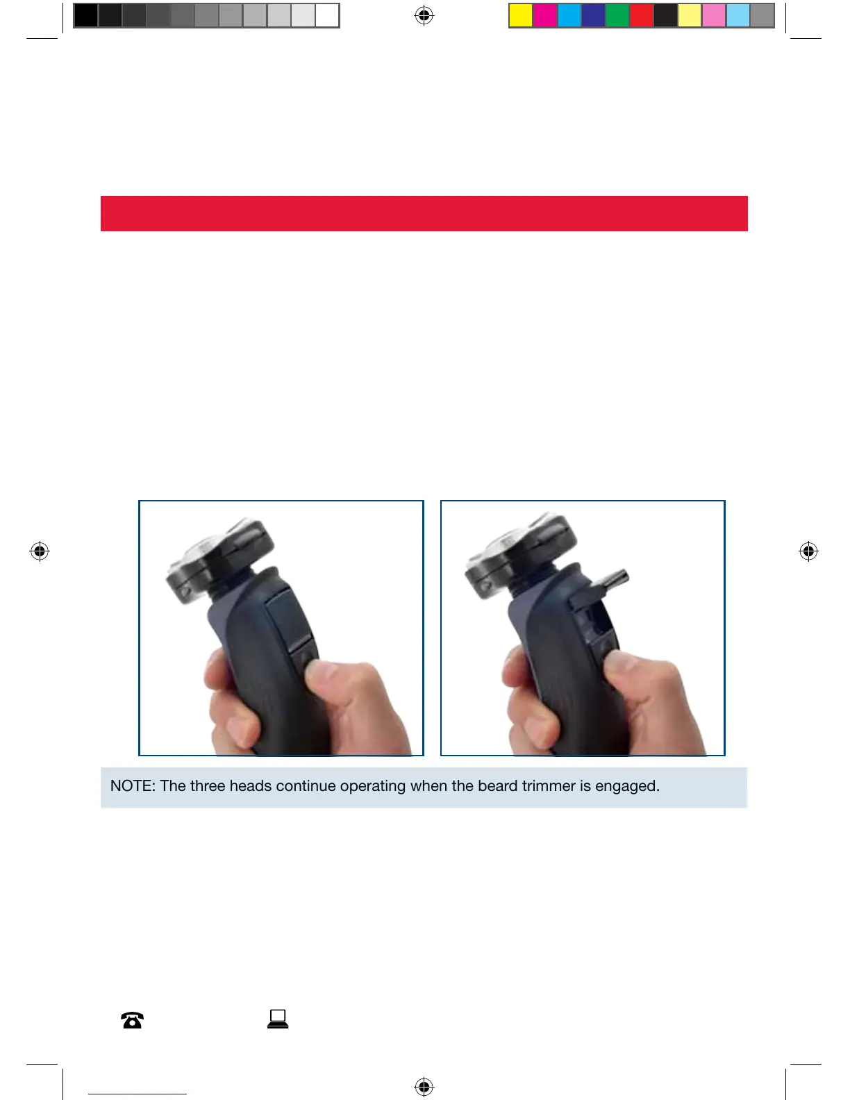 NOTE: The three heads continue operating when the beard trimmer is engaged.