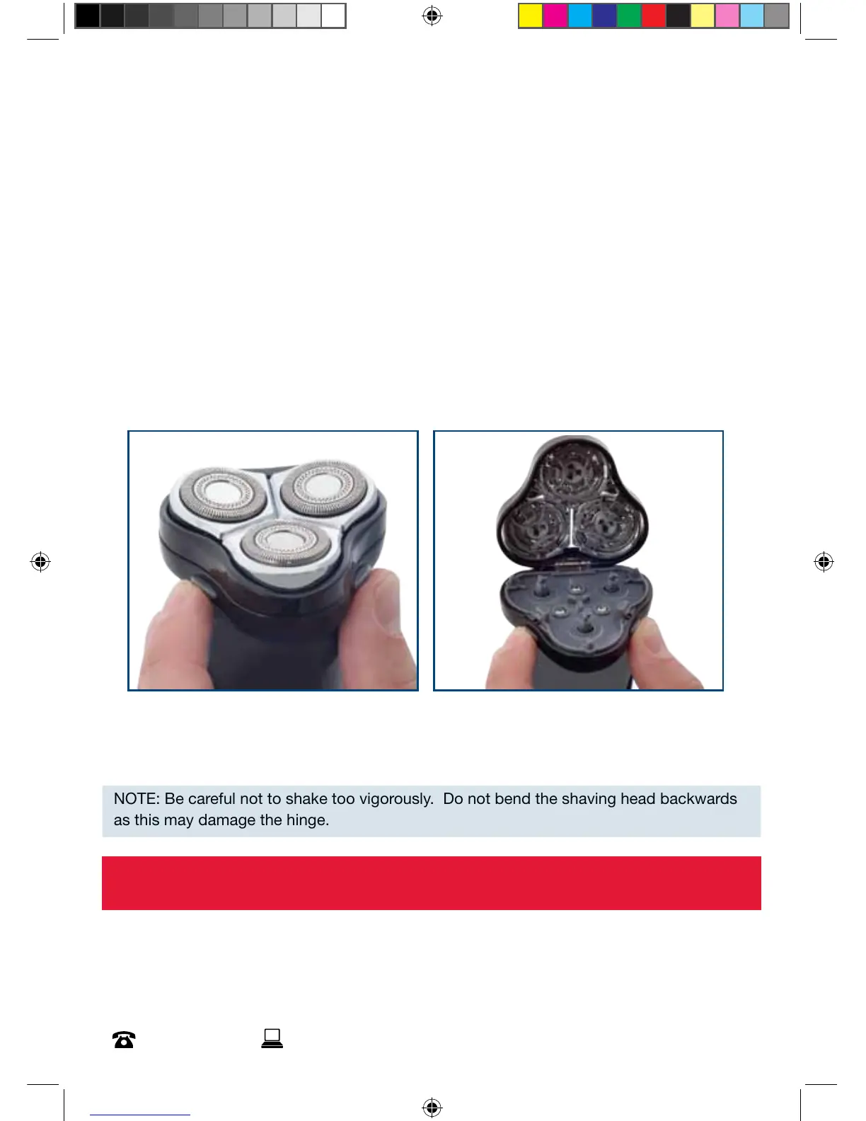 NOTE: Be careful not to shake too vigorously. Do not bend the shaving head backwards