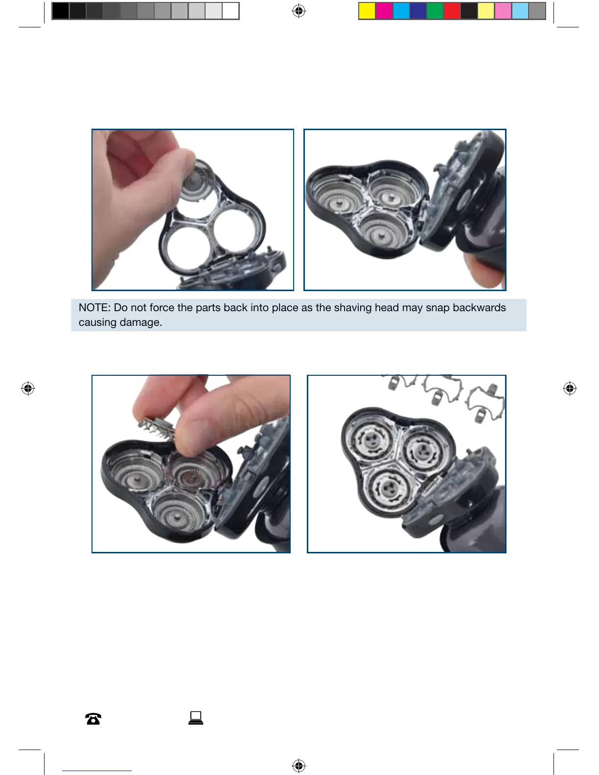 NOTE: Do not force the parts back into place as the shaving head may snap backwards
