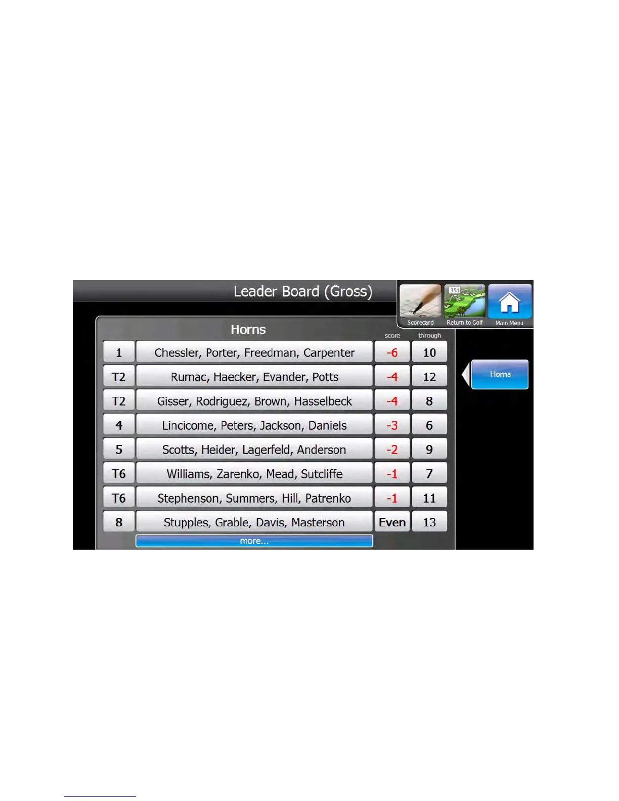 scores. To view the next 8 players, press the “more...” button at the bottom of the screen.