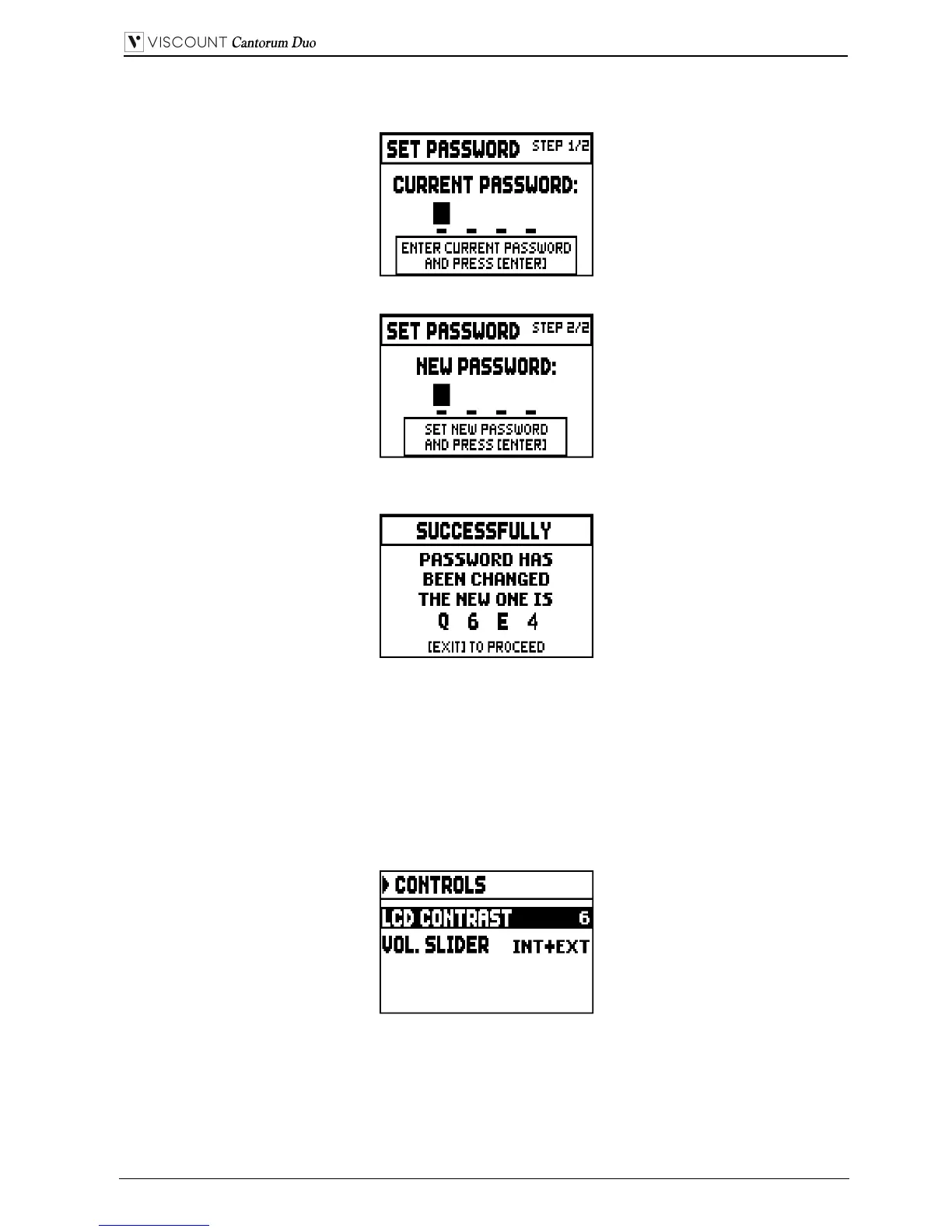 selezionare il campo SET PASSWORD, il sistema dapprima chiede di inserire il codice esistente: