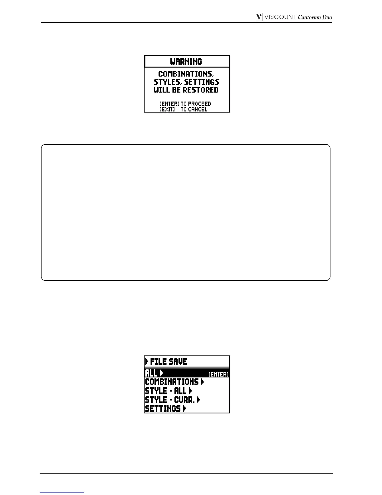 combinazioni, stili, ecc...) presenti nell’organo verranno perse. Per evitare ciò si consiglia di