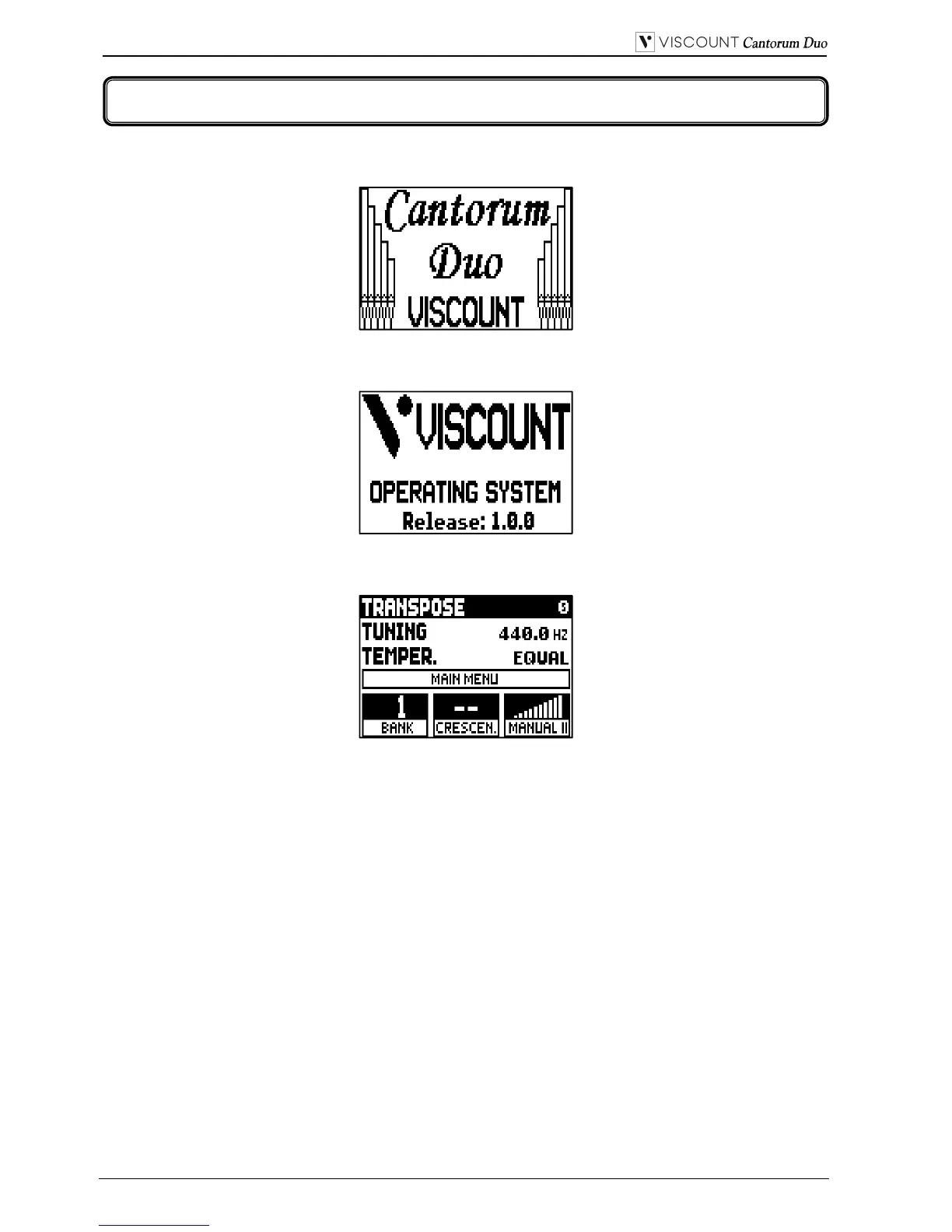 The display field MAIN MENU allows to access the main menu with all the organ configurations. To