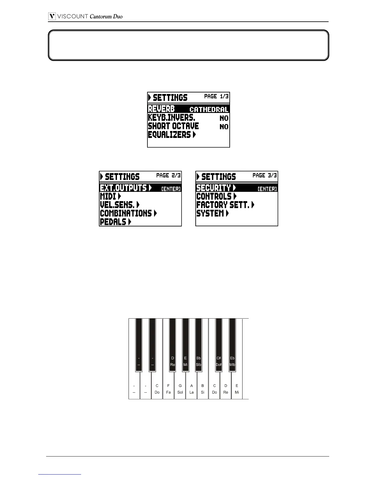 o SHORT OCTAVE: select YES to activate the short octave on the first octave of pedalboard and