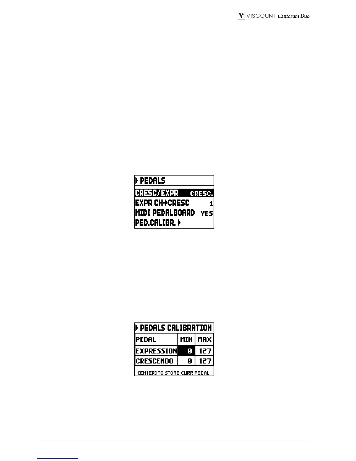 the steps of the Crescendo. Selecting the M.I/PED item the pedal controls the volume of the Manual