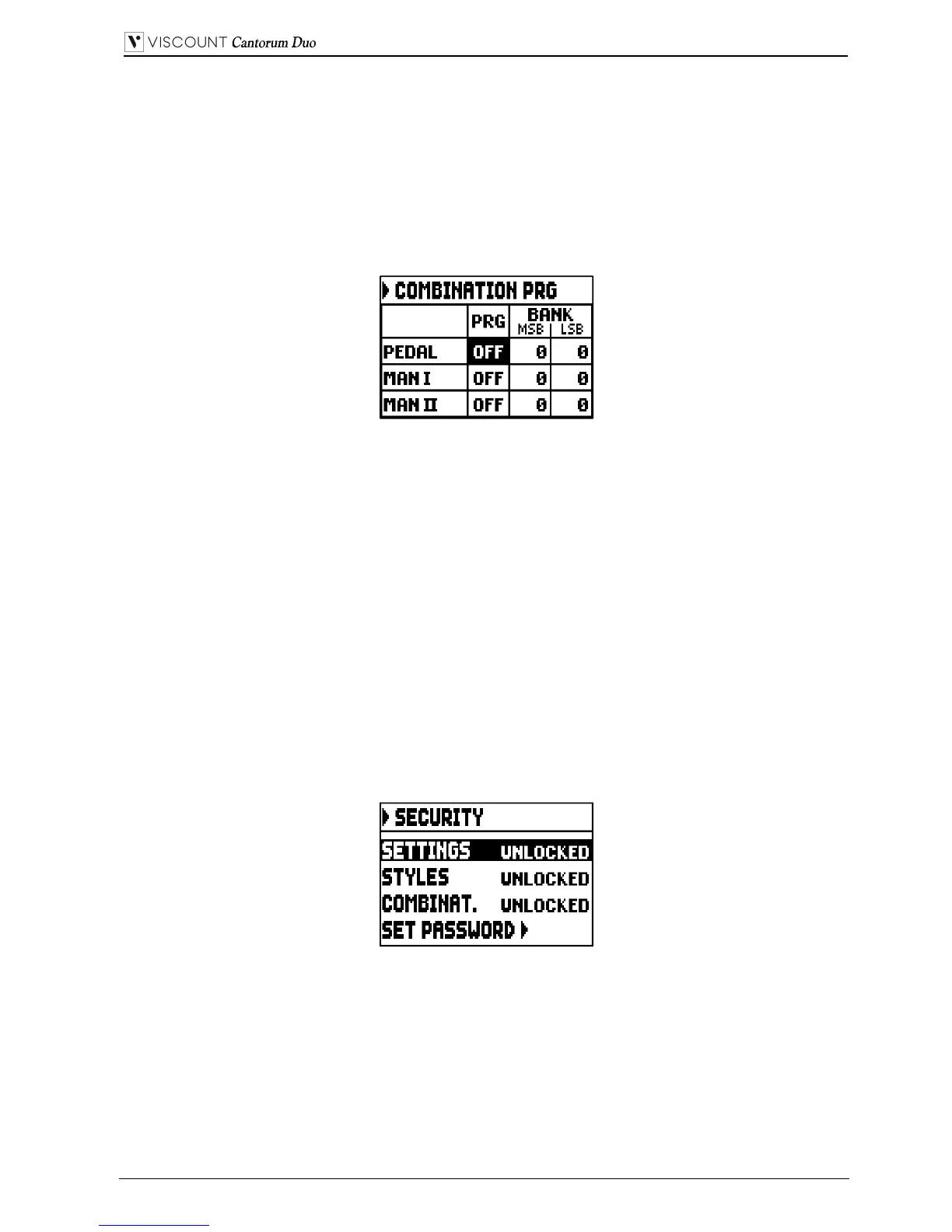 In order to prevent any modification to the organ settings, the SECURITY function should be used.