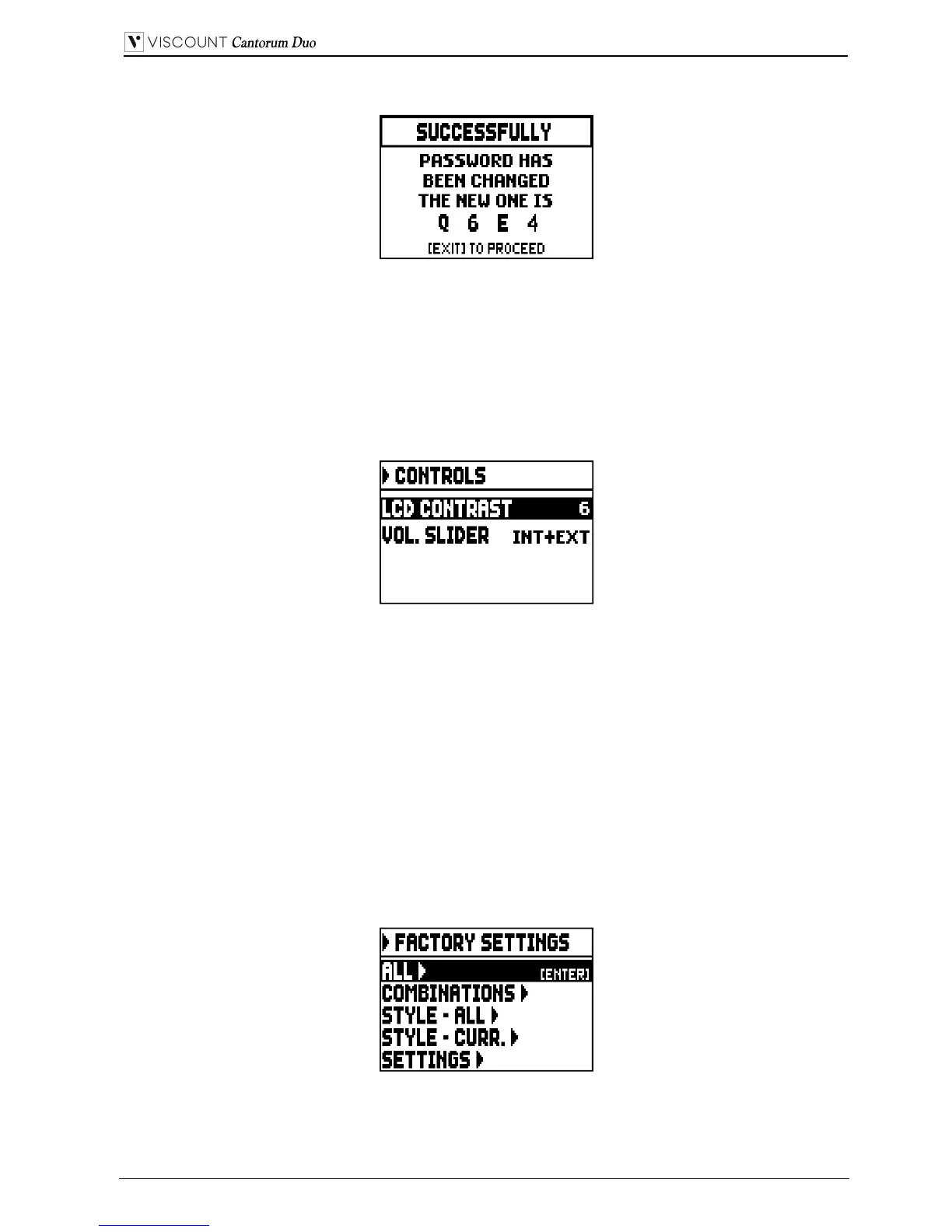 The organ has several options to restore the original (factory) settings. To recall this function select the