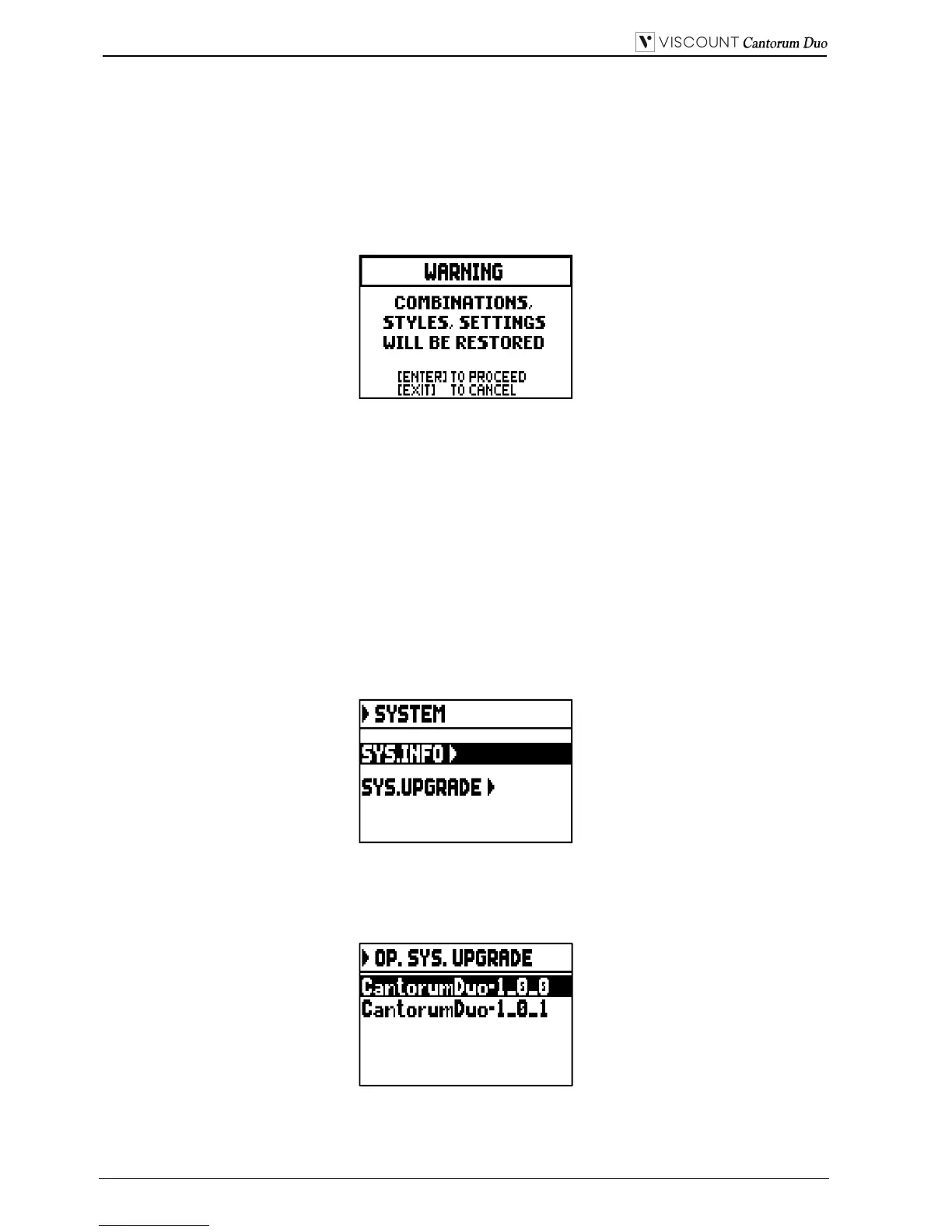 now select the SYS. UPGRADE field. The system displays the Cantorum Duo update file(s) (different