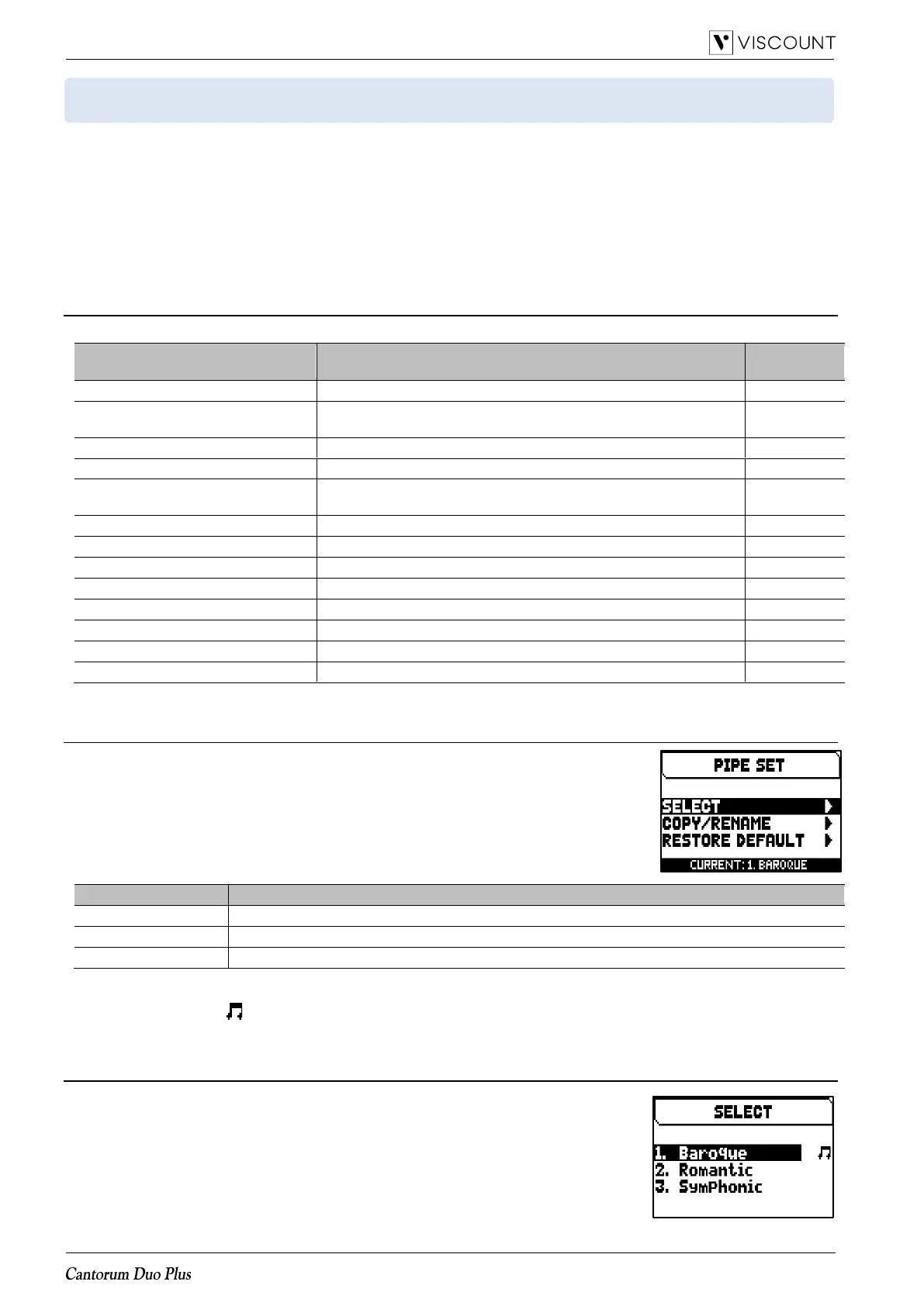 The Pipe Sets supplied by Viscount are already present in the instrument at the time of purchase and programmed