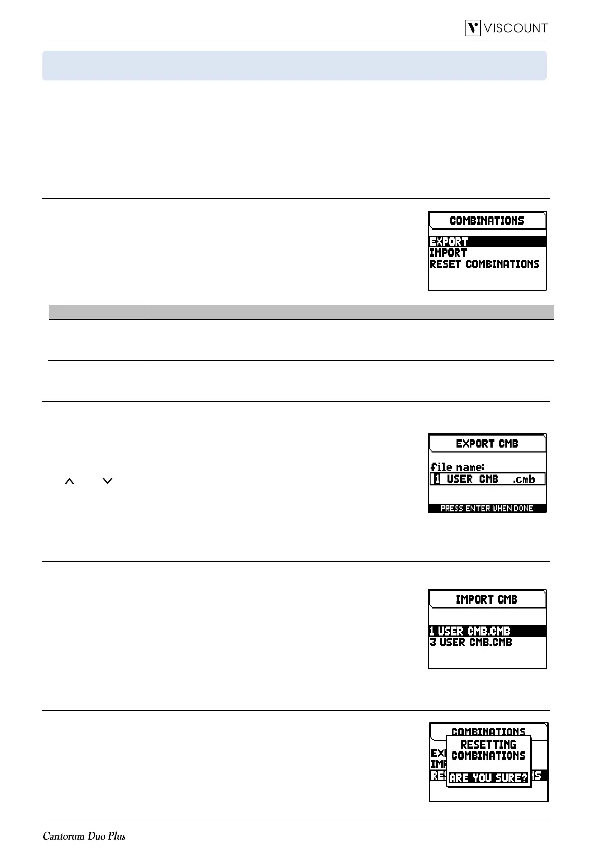 To load all the organs’s combinations from a USB flash drive saved as a .CMB file using the EXPORT function