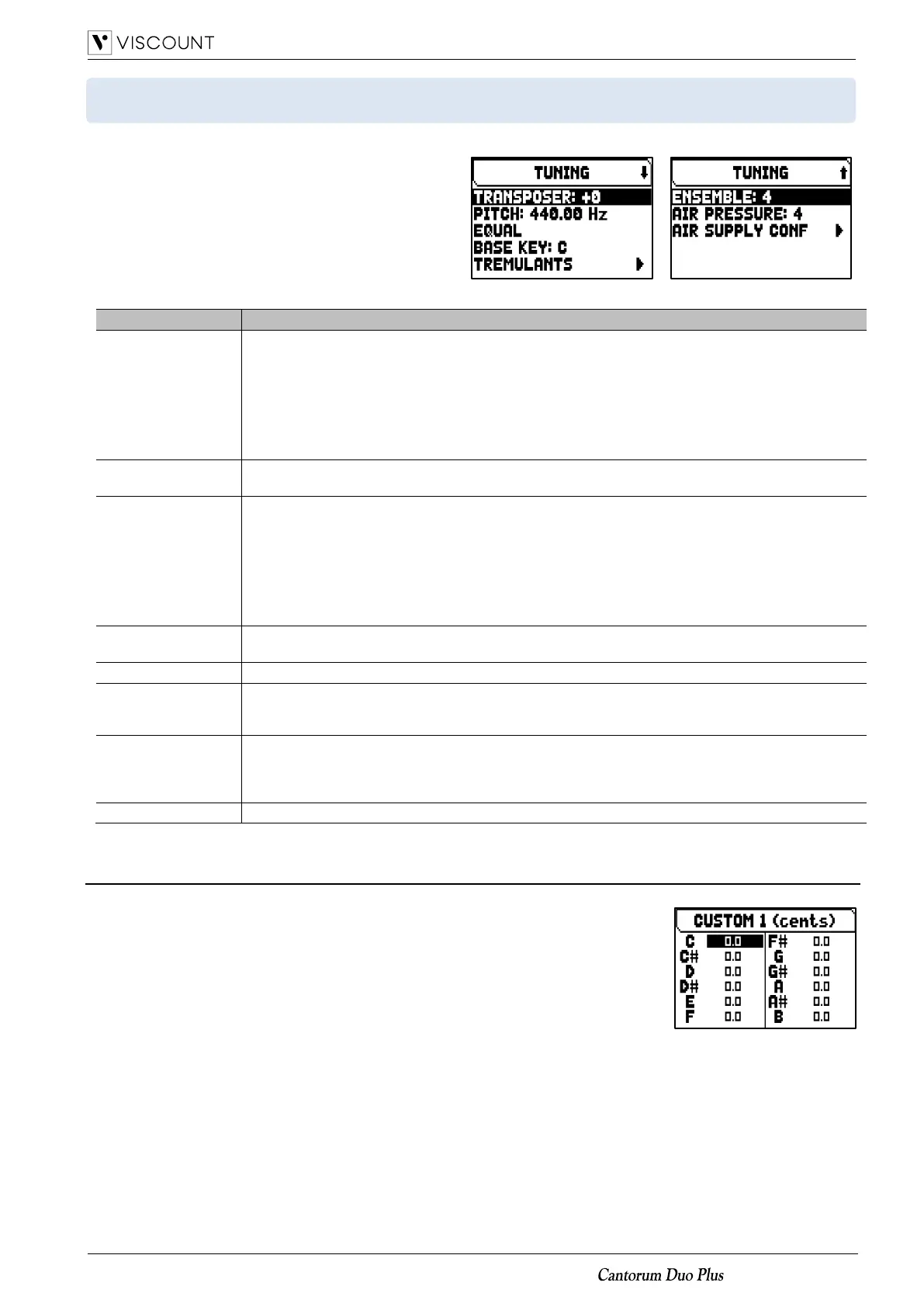 In addition to the historical temperaments it is possible to program up to 4 custom