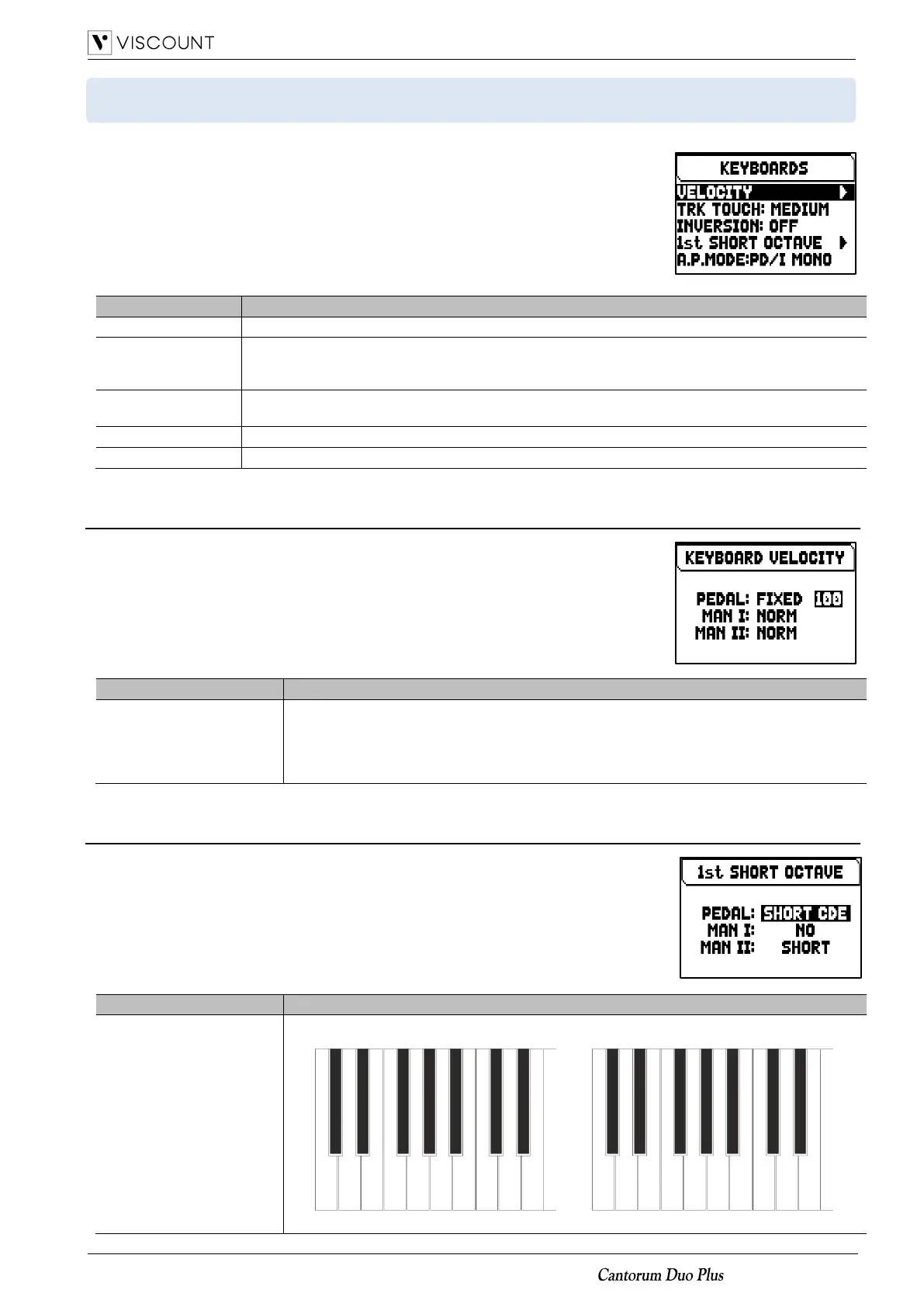 The KEYBOARDS menu contains all the settings relating to the manuals and their
