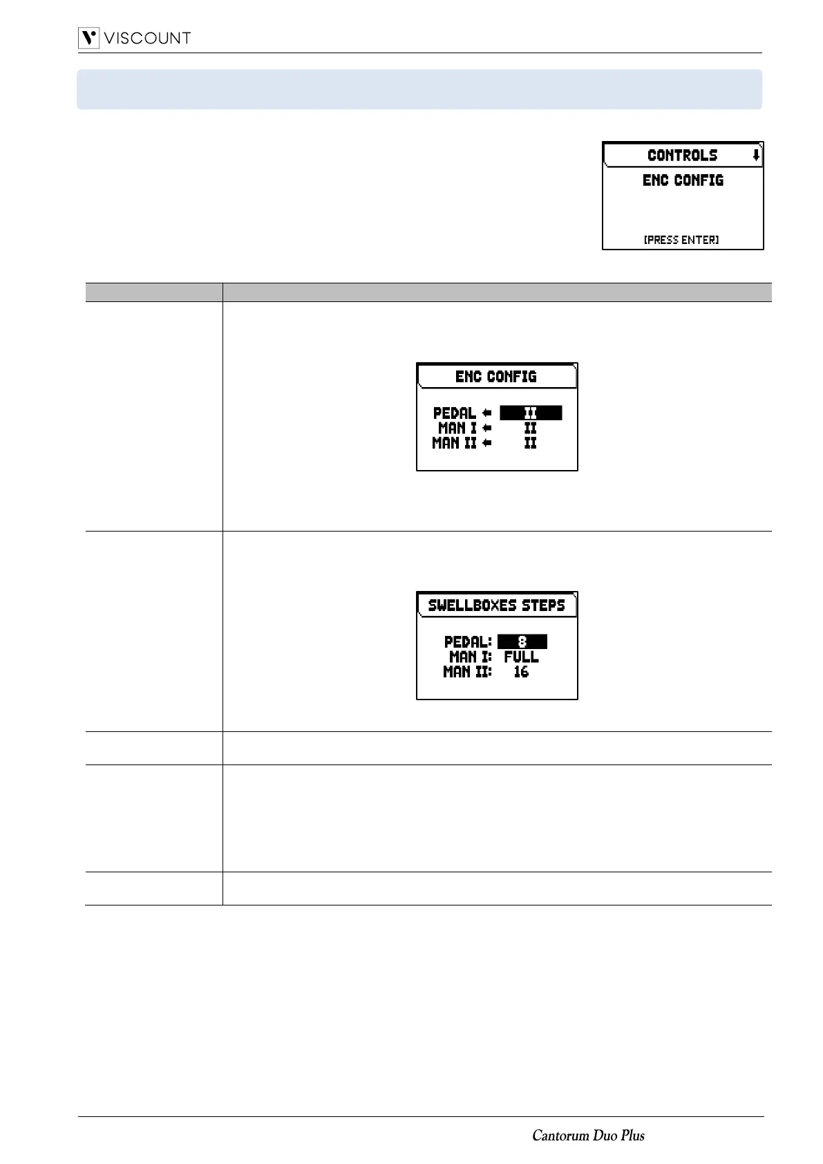 ORGAN CONTROLS SETTINGS (SETUP / CONTROLS menu)