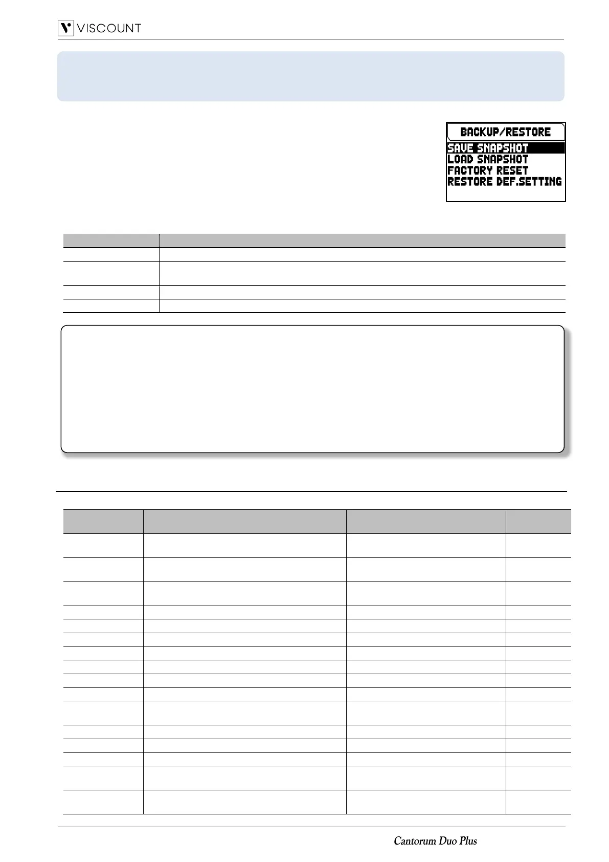 BACKUP, RESTORE and FACTORY RESET of ORGAN