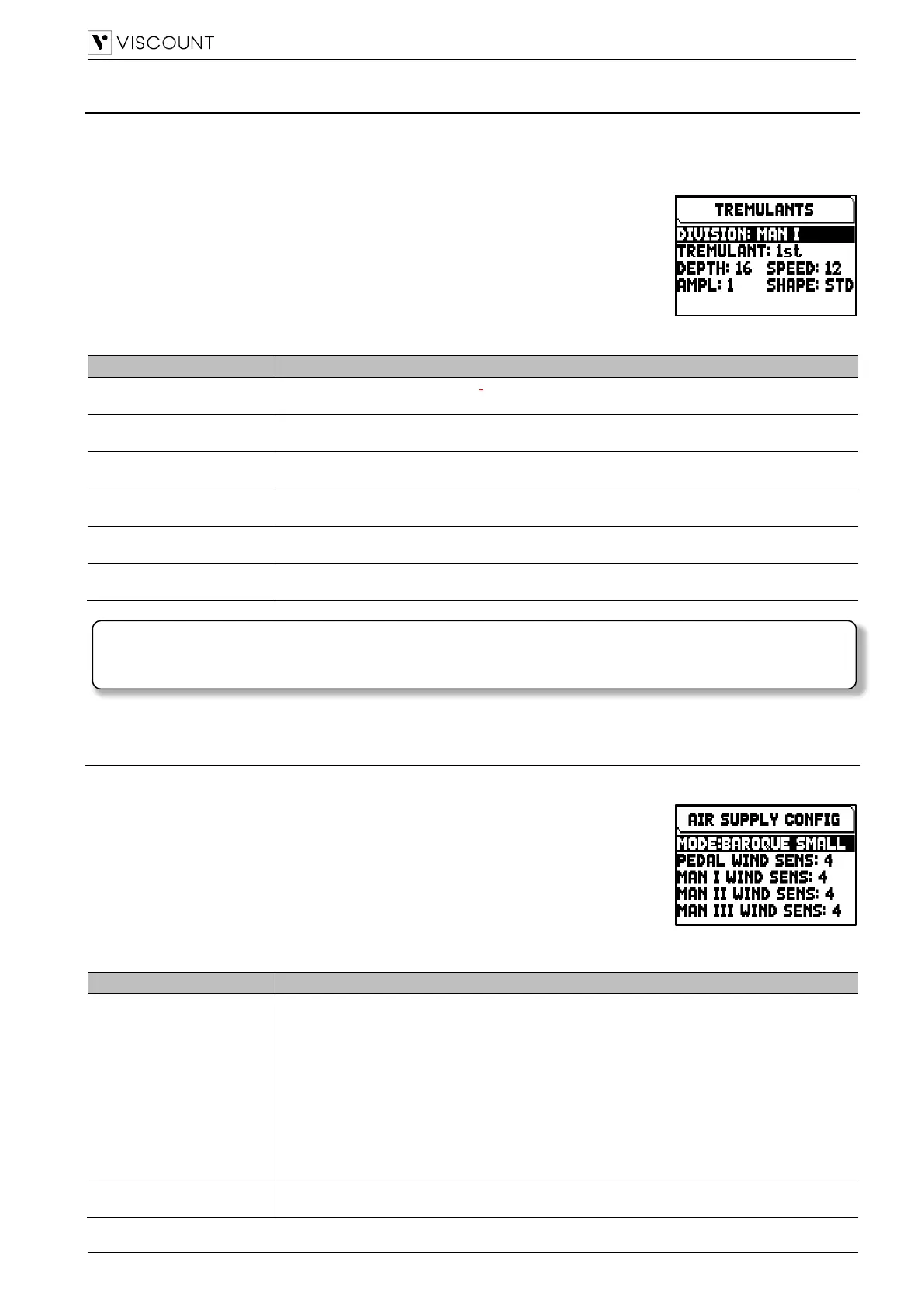 Tremulant parameters can be saved with different values for each general combination and for the Tutti. To