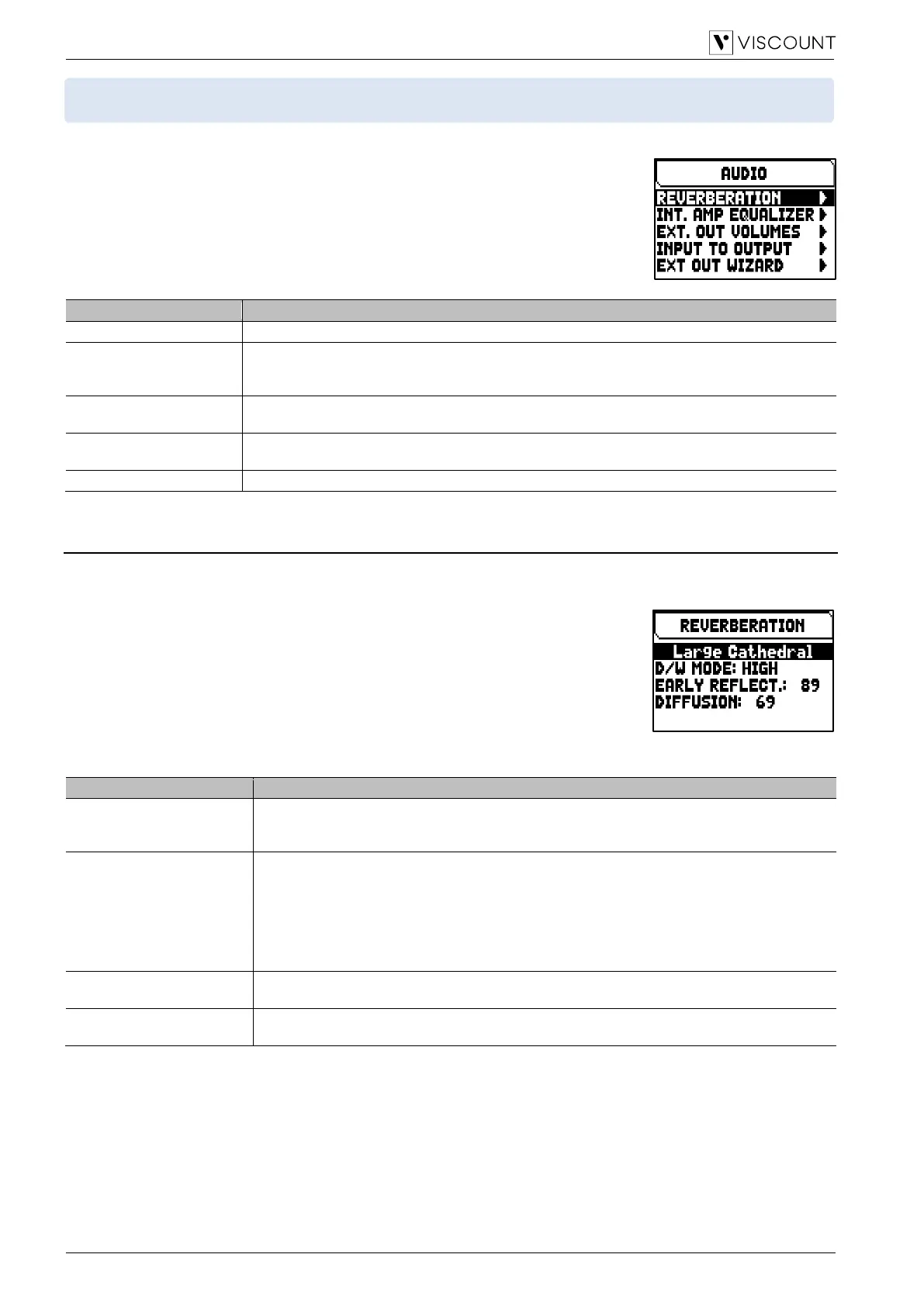 The REVERBERATION function allows to adjust several parameters of the reverb