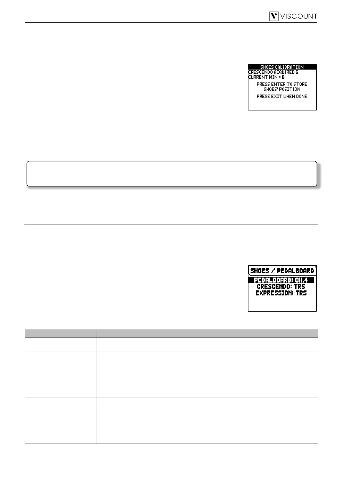 When connecting pedals to PEDALS [EXPR.] and [CRESC.] it might be useful to perform a calibration.
