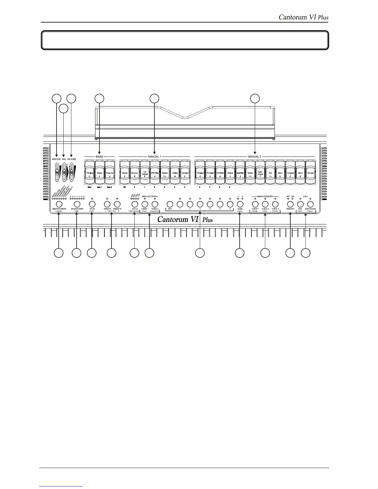 1. Regler [MASTER]: Regelt die Gesamtlautstärke der Orgel.