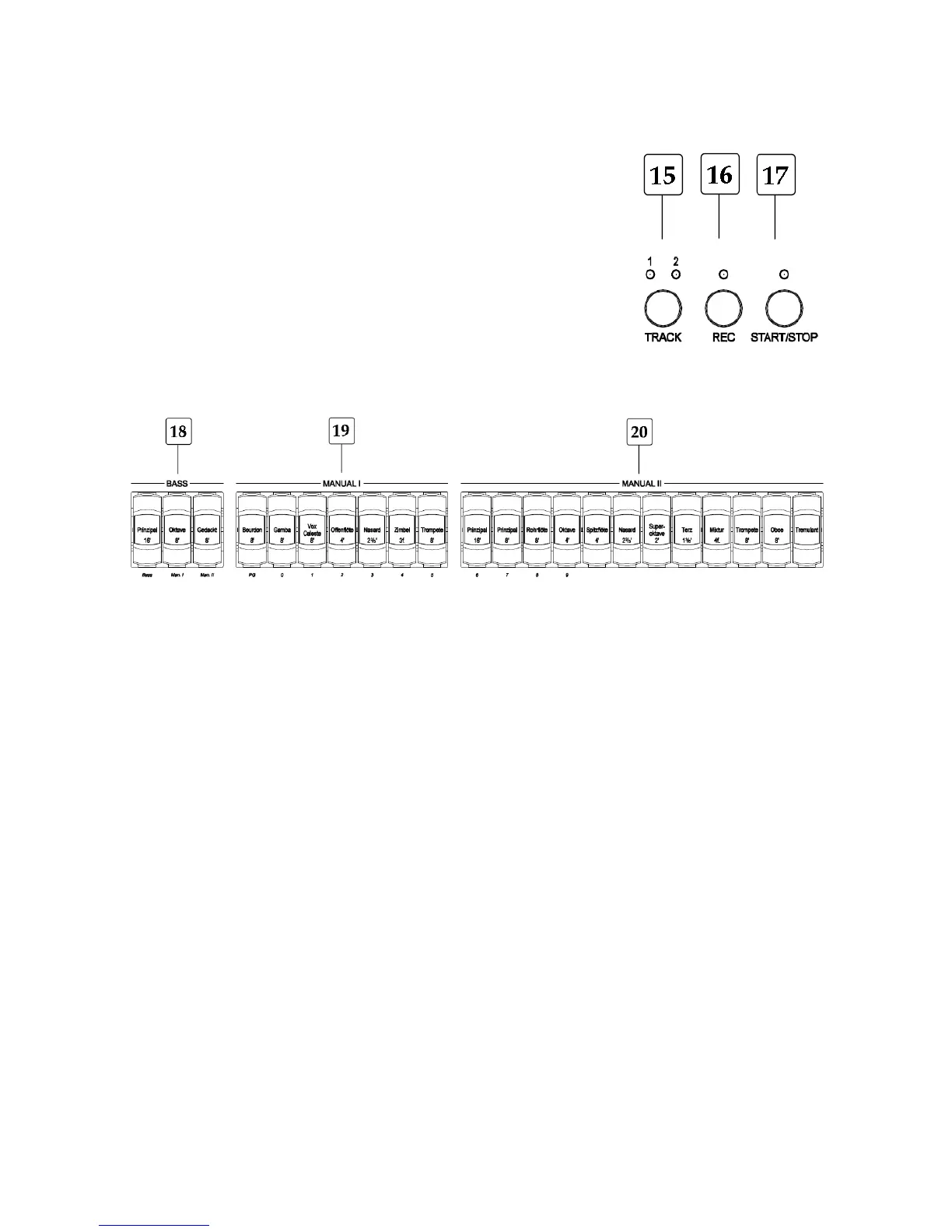 18.[BASS]: In diesem Bereich befinden sich die Register für den Bassbereich.