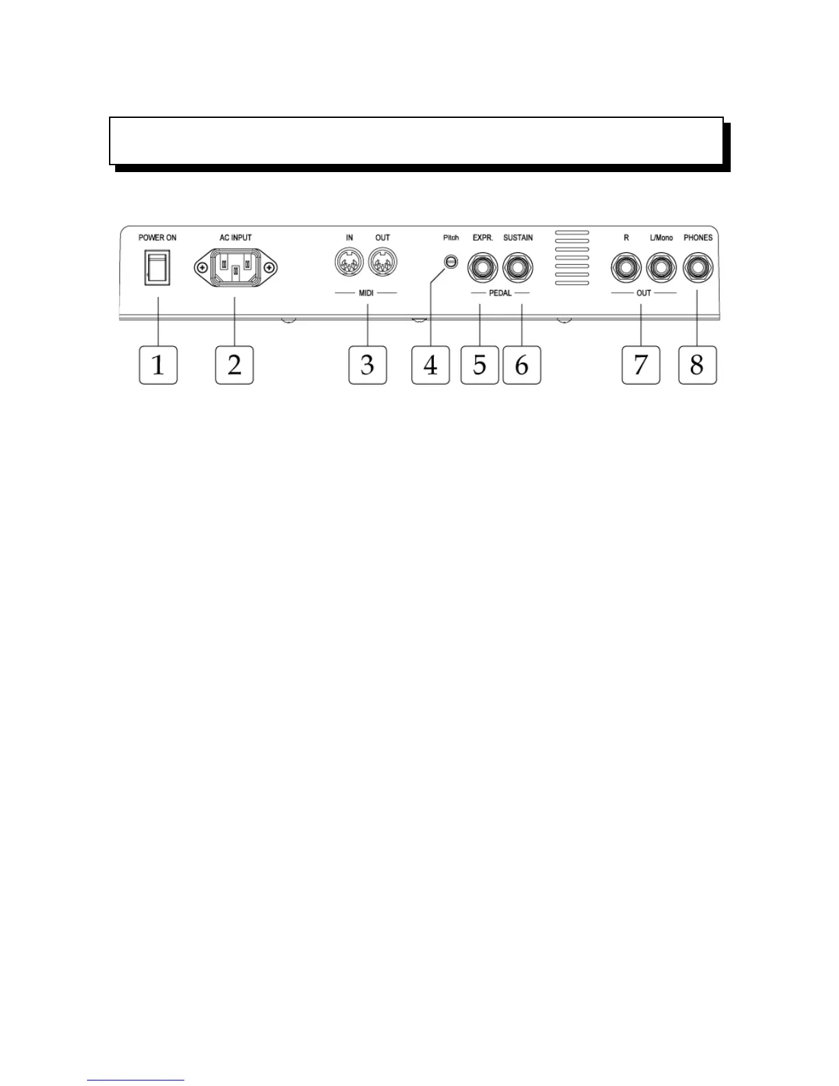 5. [EXPR.PEDAL]: 6.35mm-Jack aansluitplug voor het aansluiten van een expressiepedaal.