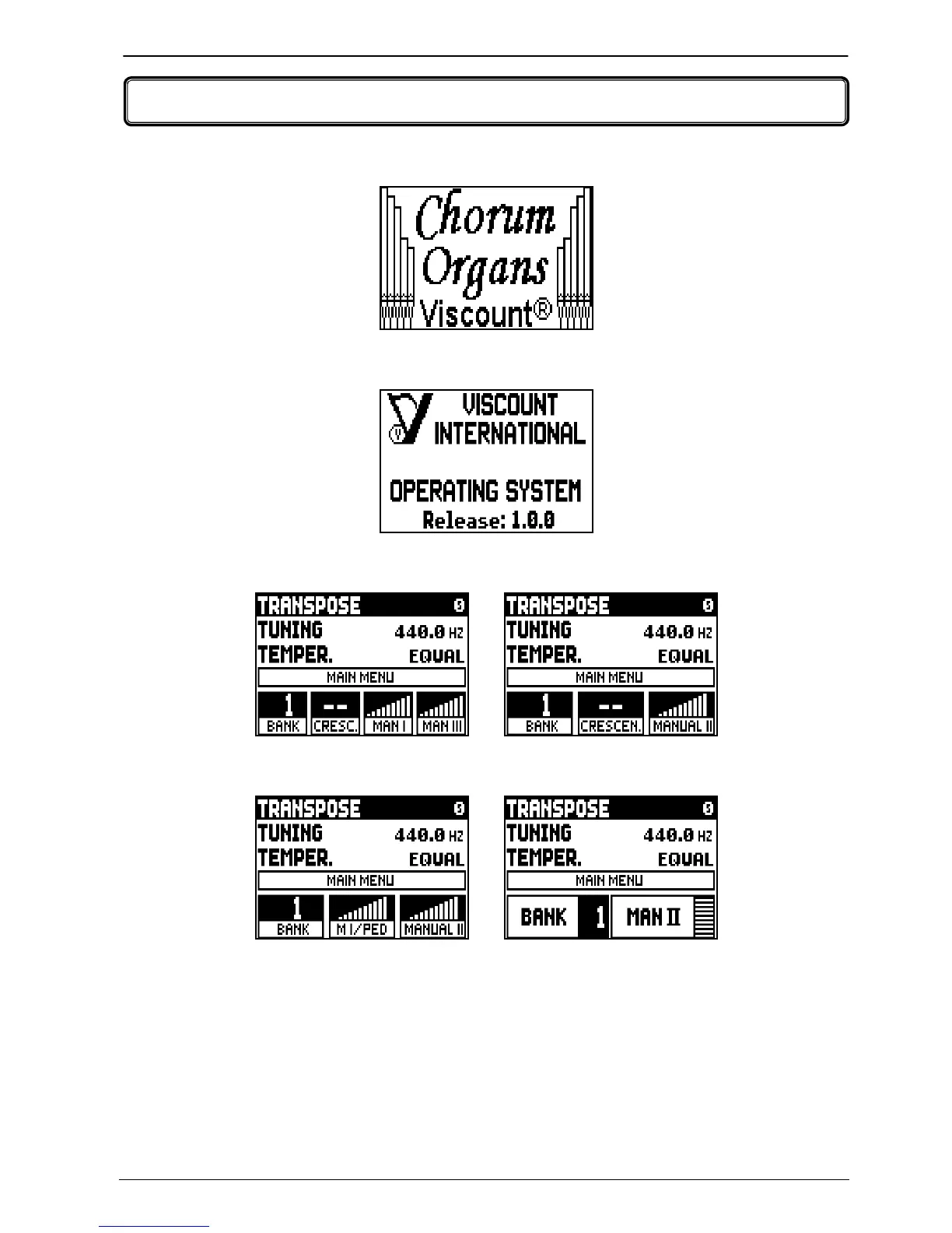 o TUNING: fine tuning of the pitch, indicated as the frequency of A3 (an 8’ pipe).