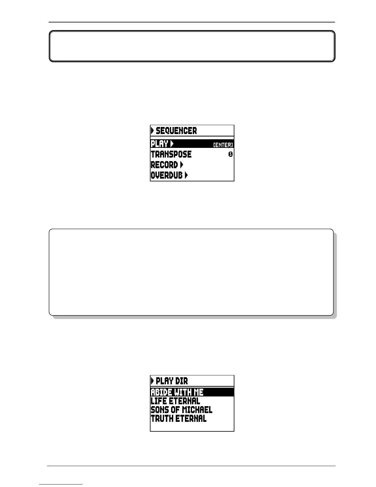 In the sequencer mode selection screen described above, select the PLAY field. The display shows the mid files