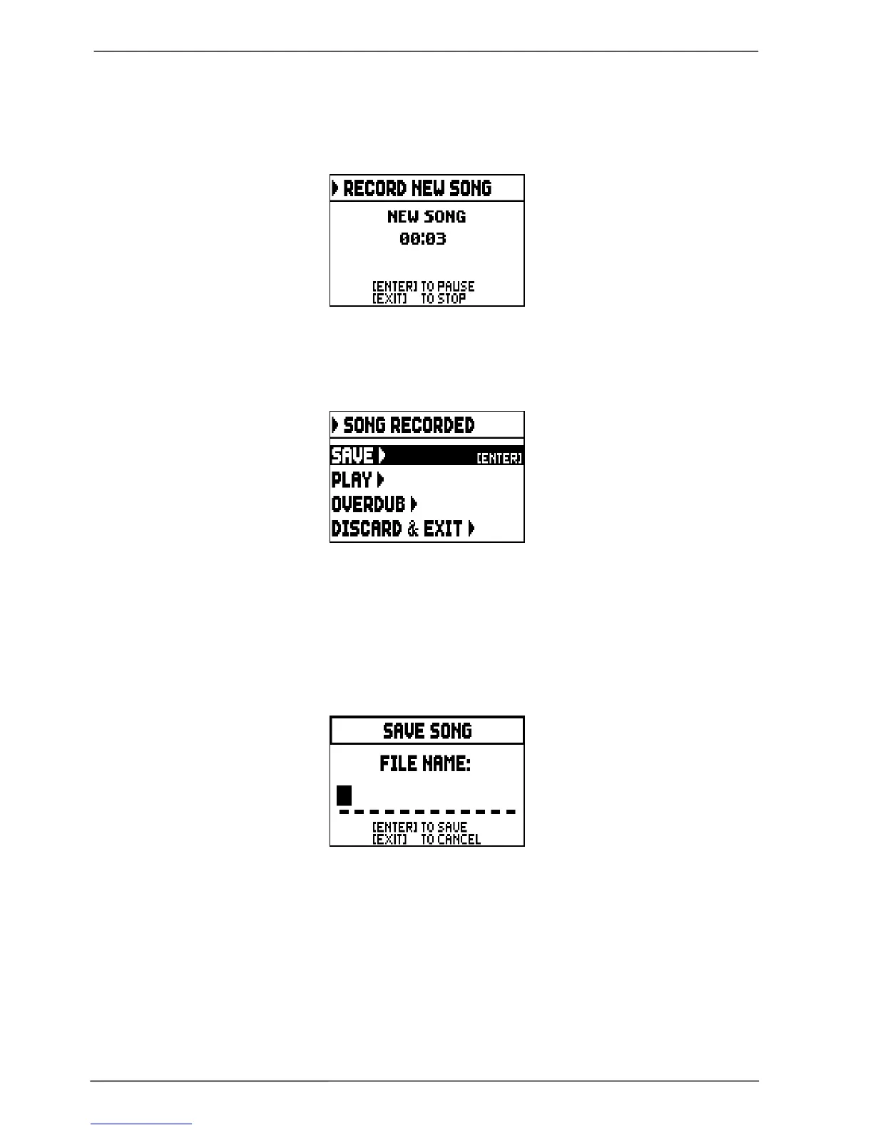 If the SAVE field is selected, the system prompts the user to assign a name to the MIDI sequence about to be