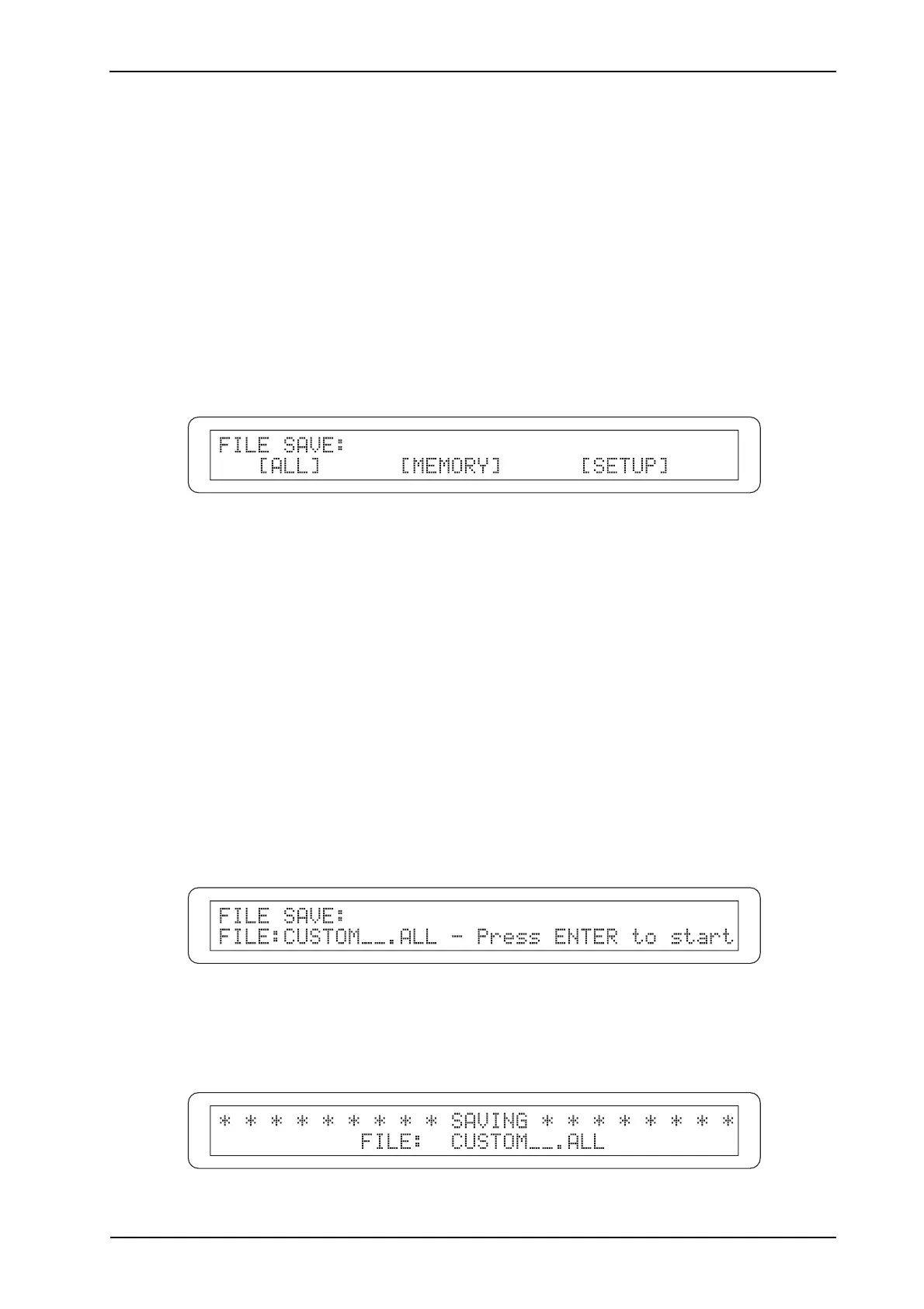 La funzione FILE SAVE permette di salvare su floppy disk tutte le memorie e/o le impostazioni